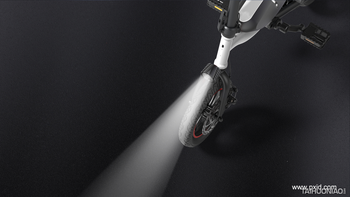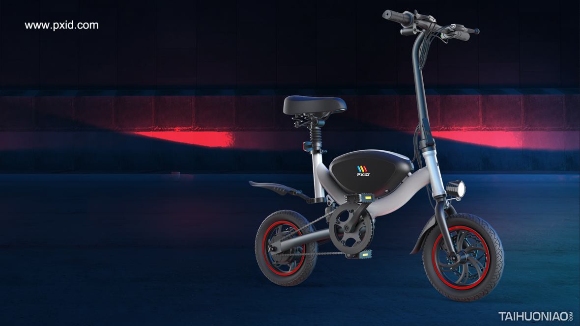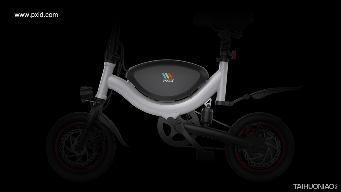 这是一款小巧、便携、舒适的电动助力车, 这款车的引人之处在电池座和车轮。