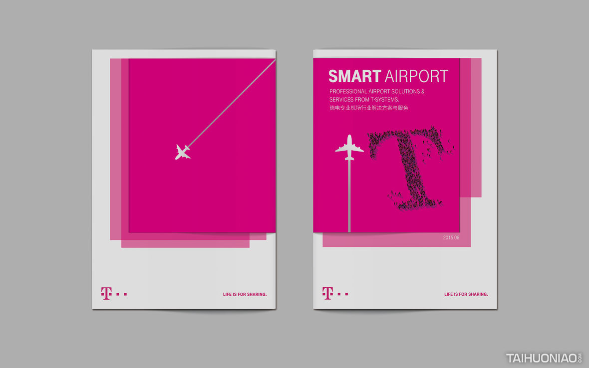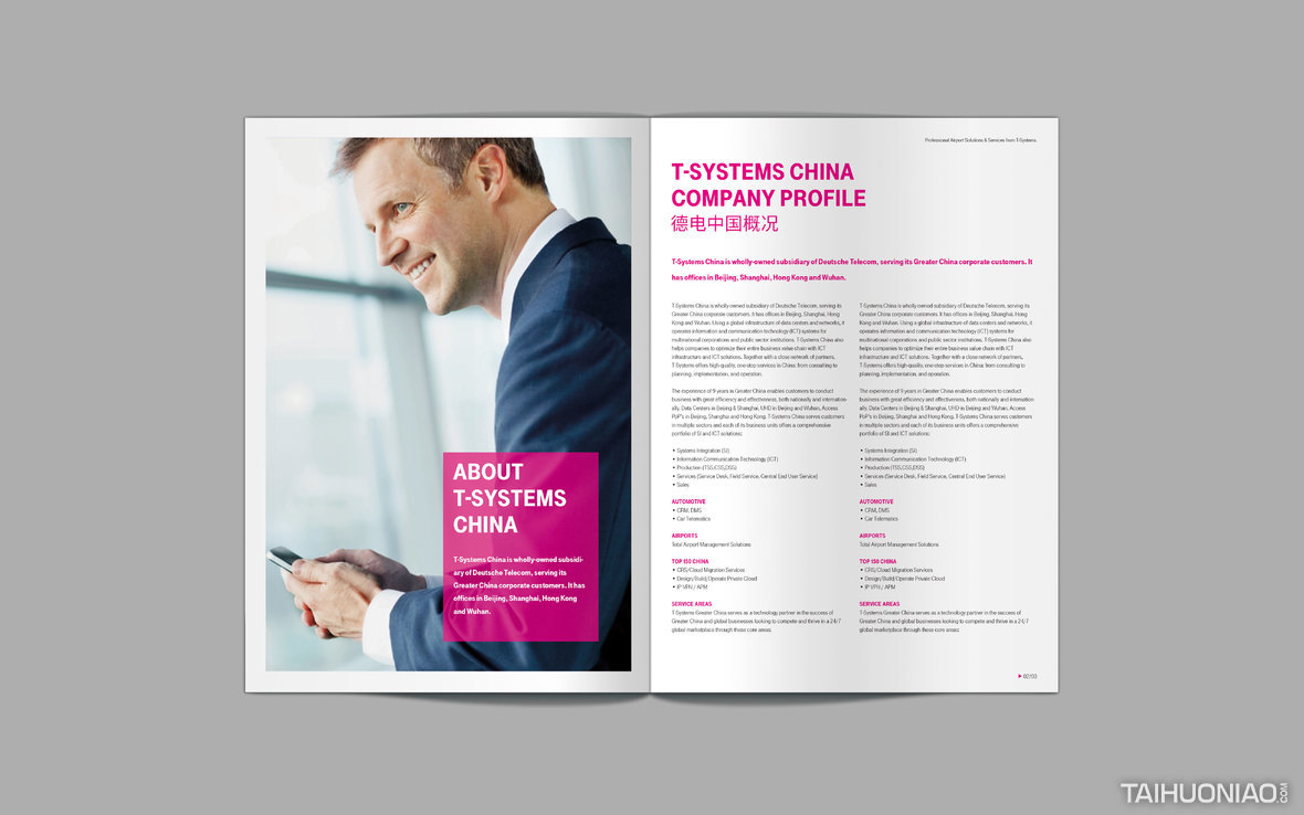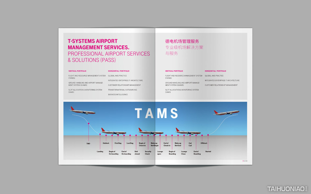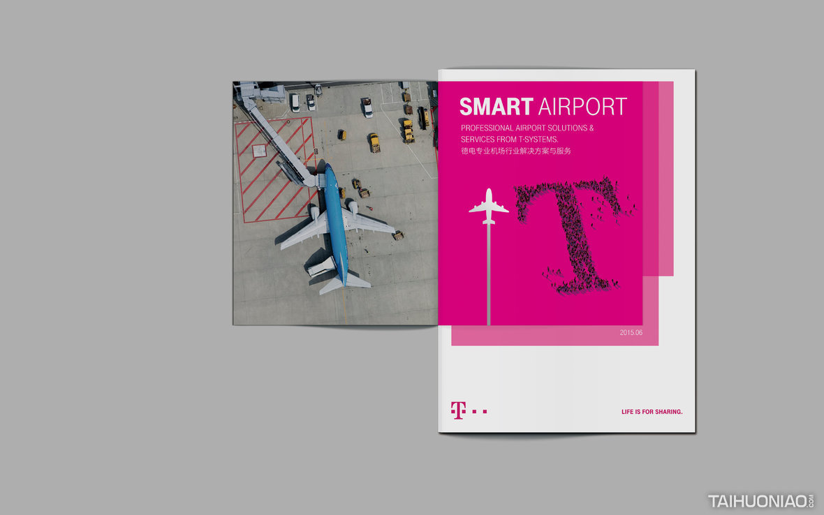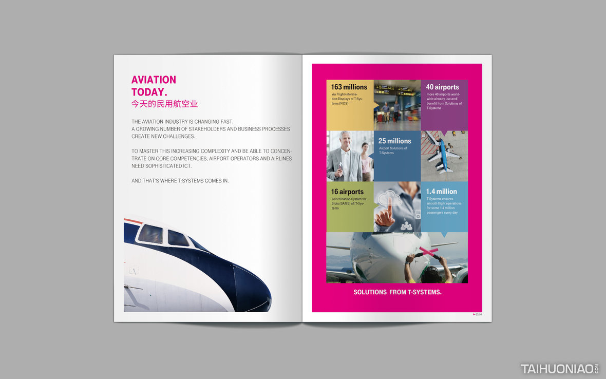 德国电信中国本土化传播 独特的双封面设计,将德电的视觉辅助图形通过三维的方式完美展现,同时增加与观者的互动,引起继续浏览的兴趣。德电全机场的管理与服务隐喻在封面与封底的 一升一降之中。
