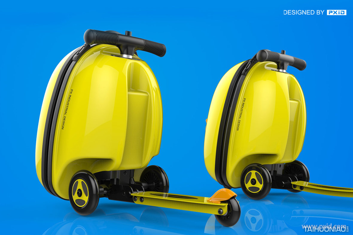 可爱的造型,靓丽的色彩,个性的3D设计。PXID基于儿童的喜爱和个性而设计的一款可以滑行的箱包车,滑板车和拉杆箱结合,让童年酷起来。一个人生初行的好伙伴,让他们在大自然中感受世界的美好,享受属于他们的风景。