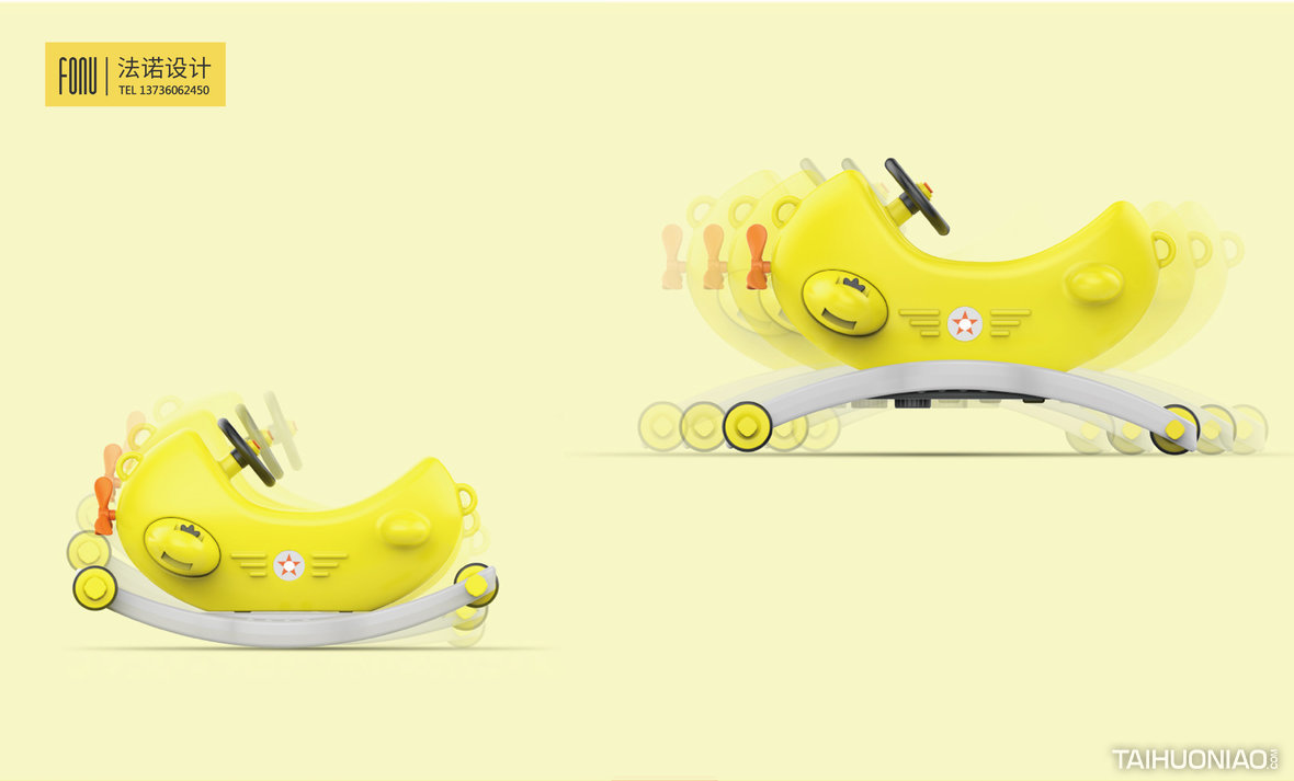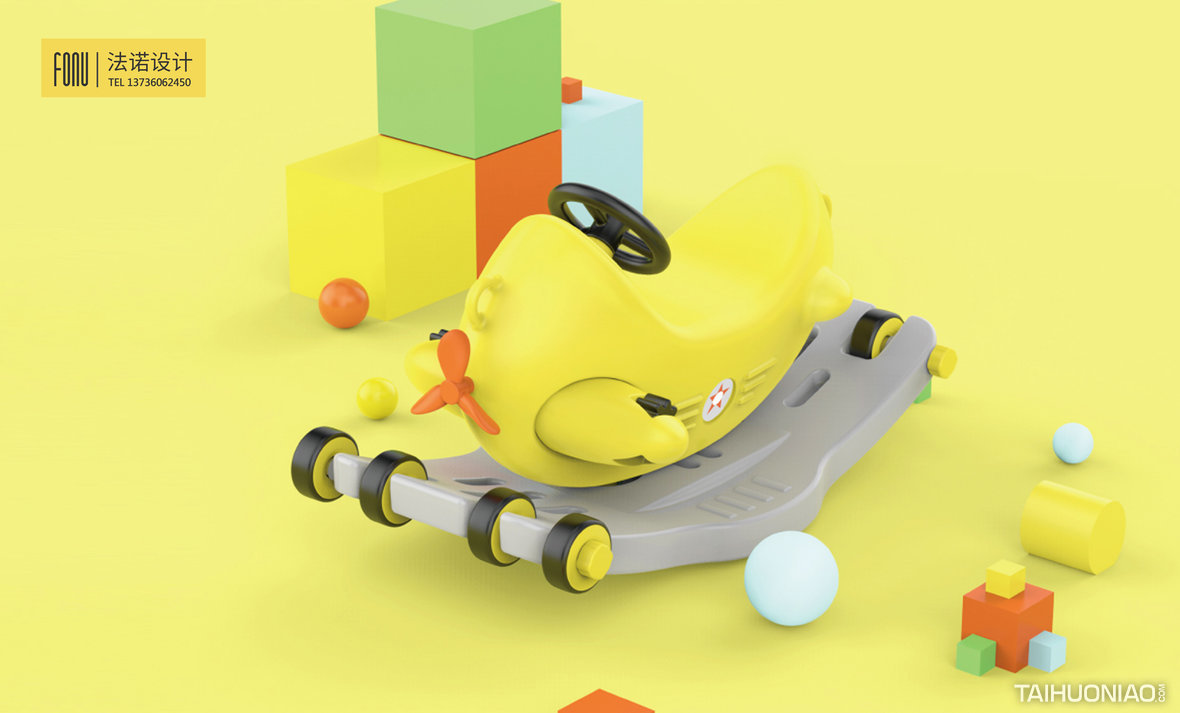 每个小朋友都有着成为飞行员的梦想,希望驾驶着飞机在蓝天翱翔。当我们给自己的孩子选玩具的时候,总是希望不仅仅给孩子带来娱乐效果,更是能够教育并且影响到孩子的成长。因此我们将每个孩子小时候最喜欢玩的摇摇马进行了改良设计,它的造型灵感来源于二战时期美国的雷霆式战斗机。 本产品的底座可以双面使用,正面安装可以让宝宝将本产品当做摇摇马使用,反面安装可以将本产品当滑行车使用;简单的拆装过程,可以将本产品在摇摇马与滑行车之间随意切换。借助一系列自主动作,抓、踢、蹬、摇,刺激宝宝身体机能的发育,锻炼宝宝的平衡能力;方向盘上设计了一个小喇叭,使产品更富有乐趣。 摇摇马整体采用环保进口食品级PE材质;底座多条横向纵向拉强筋,为底盘的承重起到了关键作用;加大底盘的设计,防止前倾后仰;符合小朋友人体工程学的宽大舒适座椅区设计,舒适支持小朋友的柔软脊椎,全方位保障小朋友玩耍时的安全