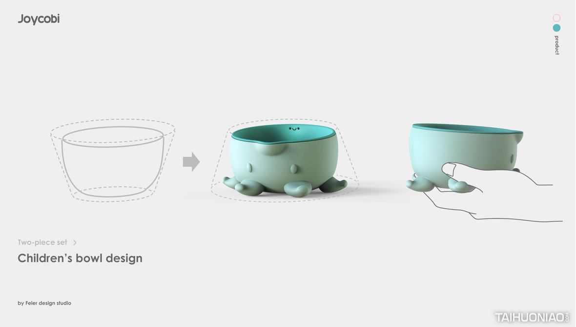 一款给电商品牌,Joycobi设计的母婴儿童碗,专注于儿童的使用习惯,方便儿童制作辅食和进食