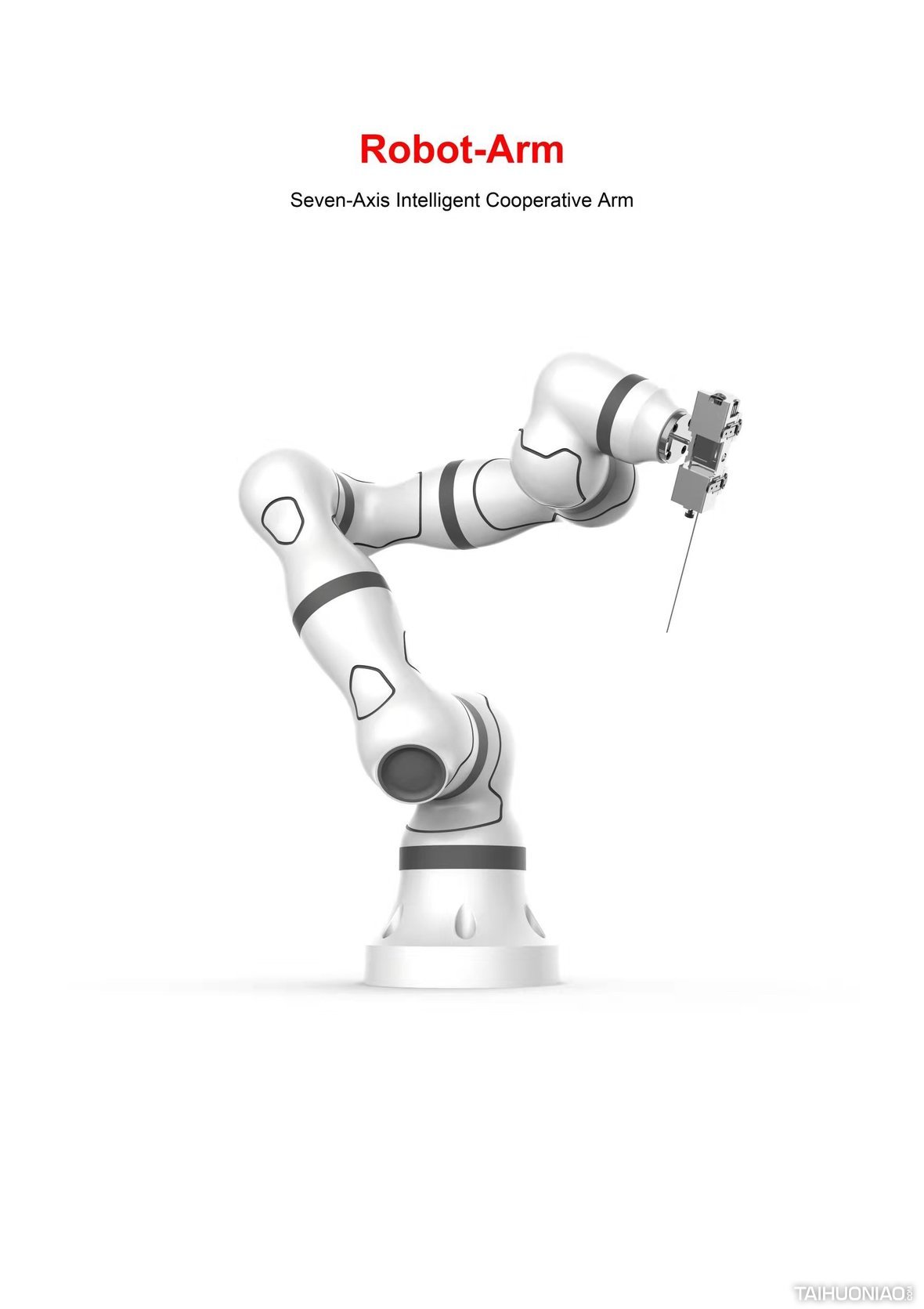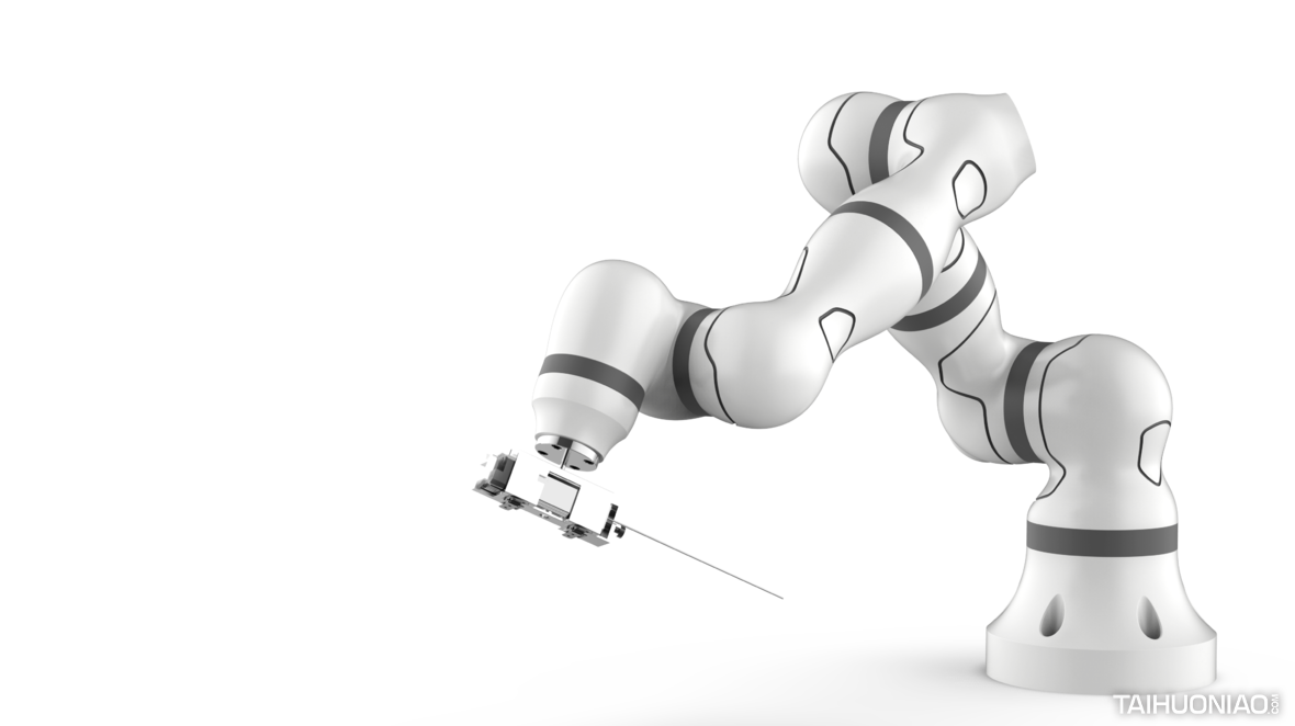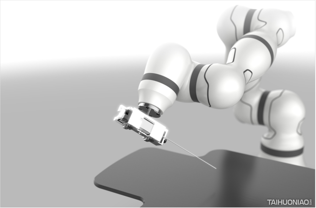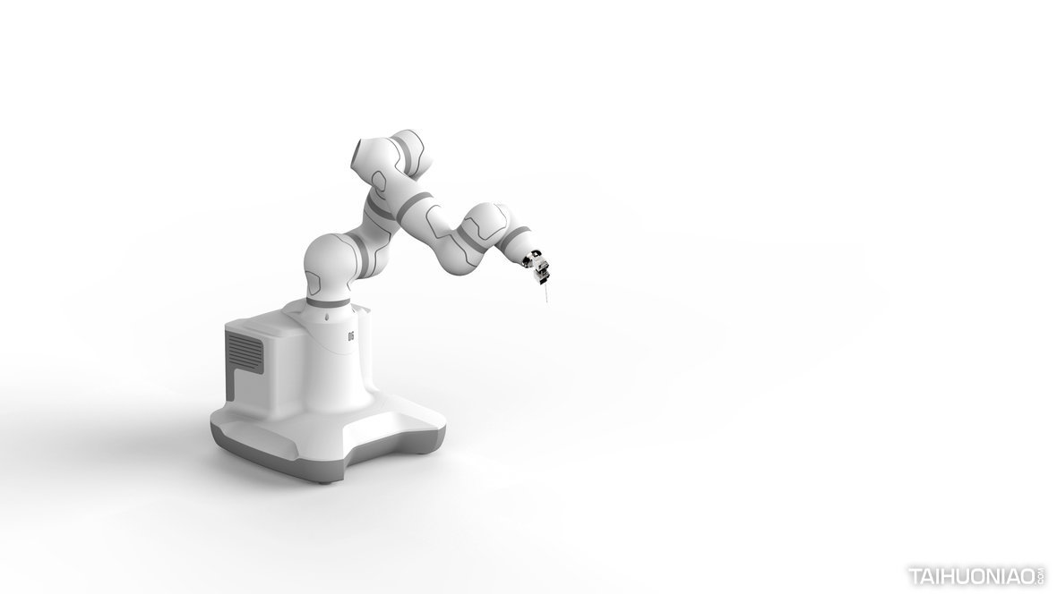 七轴智能协作臂是针对医疗外科应用而设计的模块化轻量化机器人手臂。通过不同版本的附件可以应用到不同的领域,如制造业和电子工业。设计理念是营造一种友好、专业、可靠的手臂气质,让手臂将这种感觉传递给患者,帮助患者在医院体验期间减少紧张感。由于医疗设备对绝缘性能的特殊要求,整个产品采用碳纤维作为外壳,既能对整个产品进行外绝缘,又能减轻重量,保证产品在实际应用中的安全可靠。为了使机器人内部各部件和电机保持合理的空间,计算各部件的活动范围,避免手臂运动过程中的干扰,我们制作了曲线来表现机器人手臂的肌肉感,使产品功能强大、形象生动。碳纤维外壳包裹金属骨架,使外壳重量轻,强度高。所有的电线都包裹在外壳的内部,以创造最简洁的形状。该机器人手臂将与多功能手术平台、手术规划软件、定位装置一起构成一个远程手术系统。这将是一个很好的机会来支持远程手术。