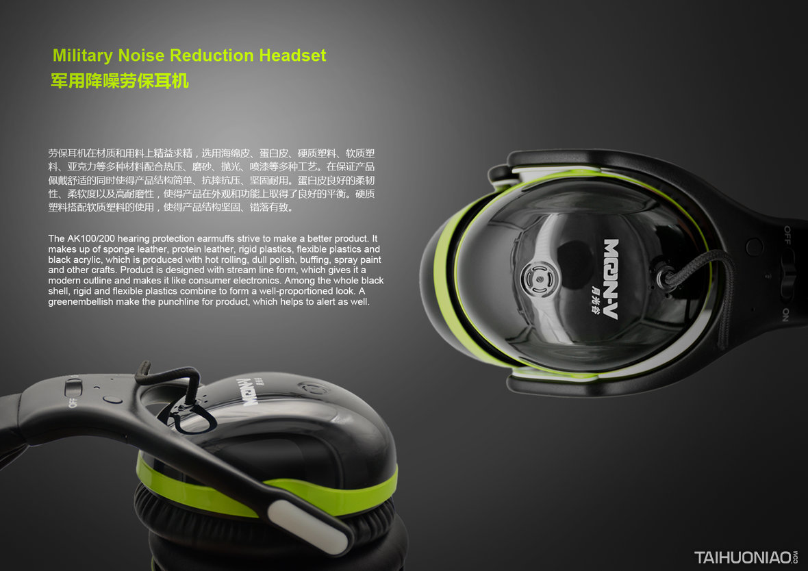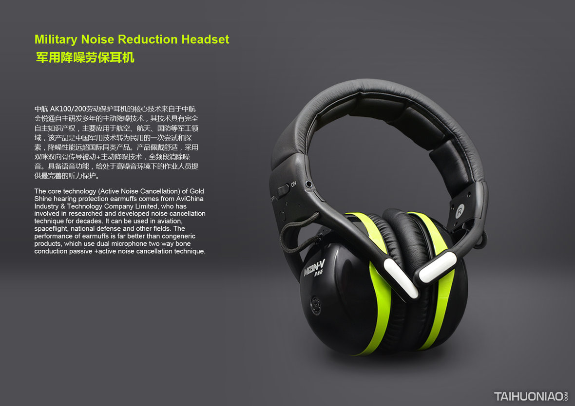 中航 AK100/200劳动保护耳机的核心技术来自于中航自主研发多年的主动降噪技术,其技术具有完全自主知识产权,主要应用于航空、航天、国防等军工领域,该产品是中国军用技术转为民用的一次尝试和探索,降噪性能远超国际同类产品。产品佩戴舒适,采用双咪双向骨传导被动+主动降噪技术,全频段消除噪 音。具备语音功能,给处于高噪音环境下的作业人员提供最完善的听力保护。 中航劳保耳机推出后即被中国海军采购并装备在中国首艘航母——辽宁舰上,用于飞行甲板上指挥人员与机组 人员沟通交流,防止他们的听力被巨大的飞行噪声损伤。该劳保耳机主要应用在需要长时间暴露于高噪音环境 的工作人员,通过主动降噪技术降低听力损伤。耳机在降噪的同时可以过滤人声,保证正常的语音沟通可以被 接收。中航劳保耳机目前已被军方采购并装备在军队中。