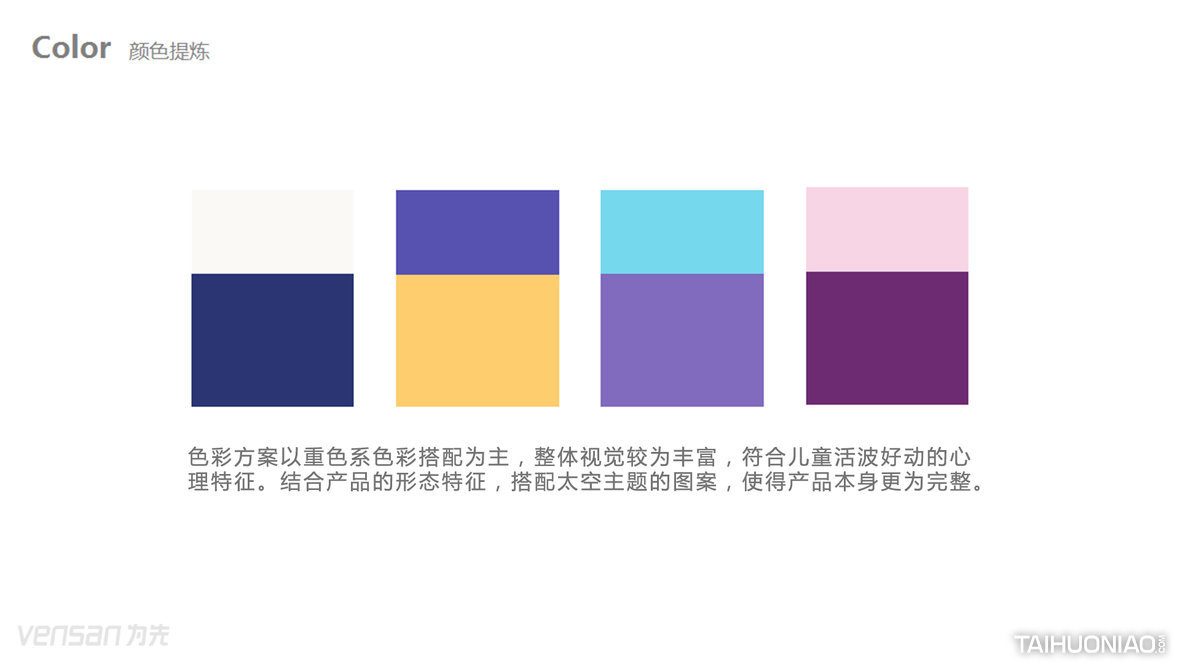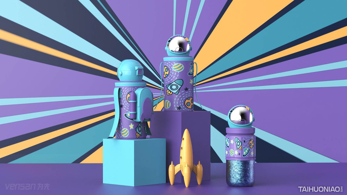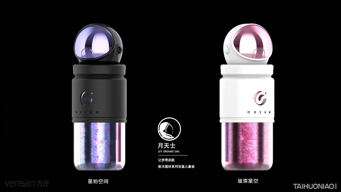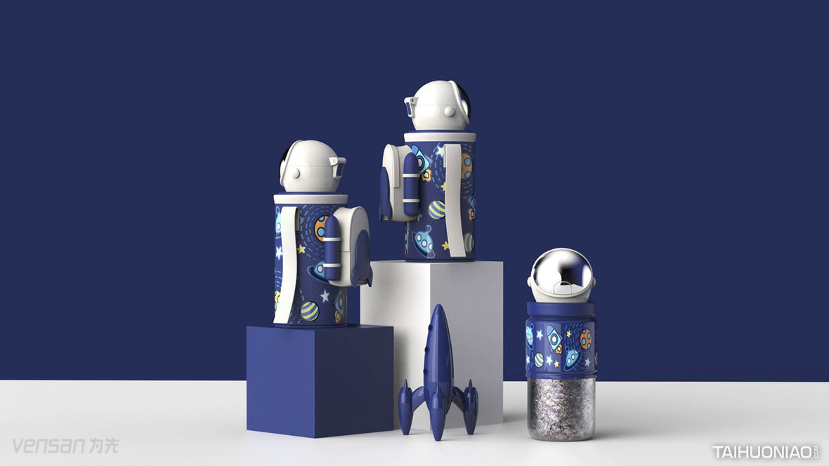 产品类型:钛儿童壶 行业突破:选用目前对人体最安全之一的钛金属材质,在安全性、保鲜性、强度等方面上完全优于现有材料。从形式、功能、材料三位一体考虑,以宇航员服饰的元素着手,打造小小宇航员的飞天梦,寓意孩子放飞梦想、起航人生。打破了儿童壶市场上偏重外观造型无内涵的现状,为市场注入一股新血液。