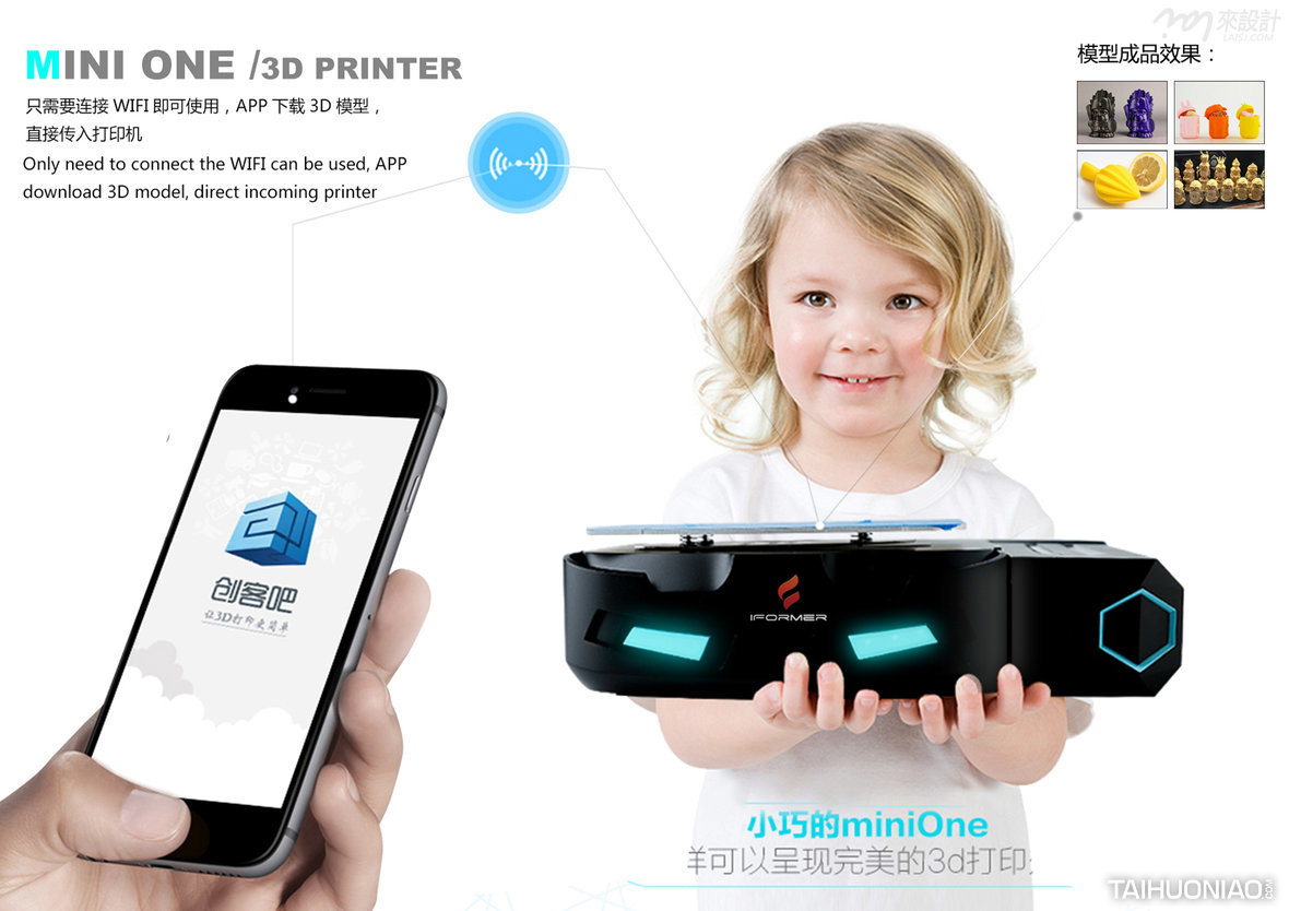 Minion3D打印机是一款通过操控智能终端app实现模型下载、云端切片和一键打印的3D打印机。Minion不仅解决了3D打印机易用性的问题,还颠覆以往3D打印机传统外观造型,把3D打印机“高颜值化”和便携化。仿动漫形象的工业设计和可折叠变形的外观,都是3D打印机前所未有的突破。既便携又时尚,让打玩3D印机是新风尚更是一种全新的生活方式。 Minion 3D Printer serves with functions like model download, cloud slicing and one-touch print by controlling the intelligent terminal app. Minion is not only easier to use, but also break the traditional appearance of 3D printer, which makes it more beautiful and easy to carry. The comic-image-simulating industrial design and