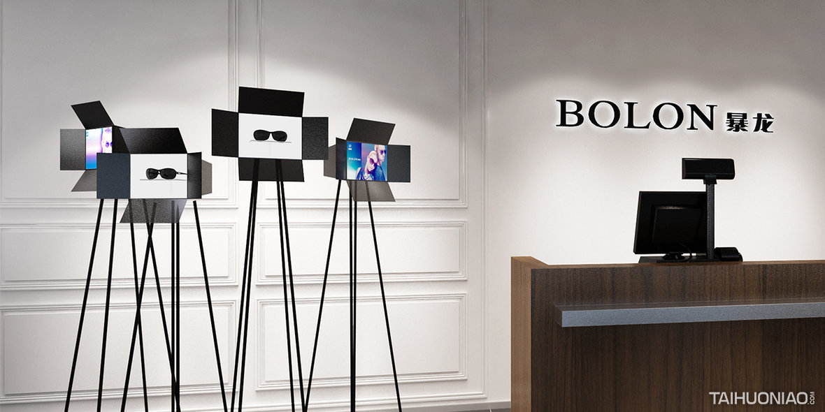 创造经典时尚的暴龙体验环境 为突破传统眼镜店难以触及的柜台式陈列、拉近消费者和产品间的距离,我们为暴龙创建了触手可及的全新体验。我们提出 “每个人都可以成为15分钟的明星”的概念。由此聚焦经典时尚,尝试在消费者心中建立起“在聚光灯下成为15分钟明星”的品牌联想。 在暴龙新形象里,我们结合消费者的感受, 发展了一系列体验元素——拍立得照片被用作眼镜的墙面展示道具,给终端环境增加了互联网时代的印记,使消费体验乐趣十足。三脚架支撑着的木质桌面,将产品完全敞开陈列,消费者可以自由选择喜欢的眼镜,比较不同款式产品特点,在一种轻松愉悦的环境中购物。 在视觉上,经典的摄影器材箱和木质老式相机三脚架,确立了终端环境沉稳的基调;用电影胶片盒改造的圆形镜面和柔光箱改造的顶灯,在满足功能需求的同时,强化了店铺的“聚焦”和“明星”主题。 所有创意元素在店内跨界重组,创造出一个经典、时尚的暴龙零售体验环境。 服务内容 • 连锁店设计 • SI系统规划设计 • 陈列展示道具设计