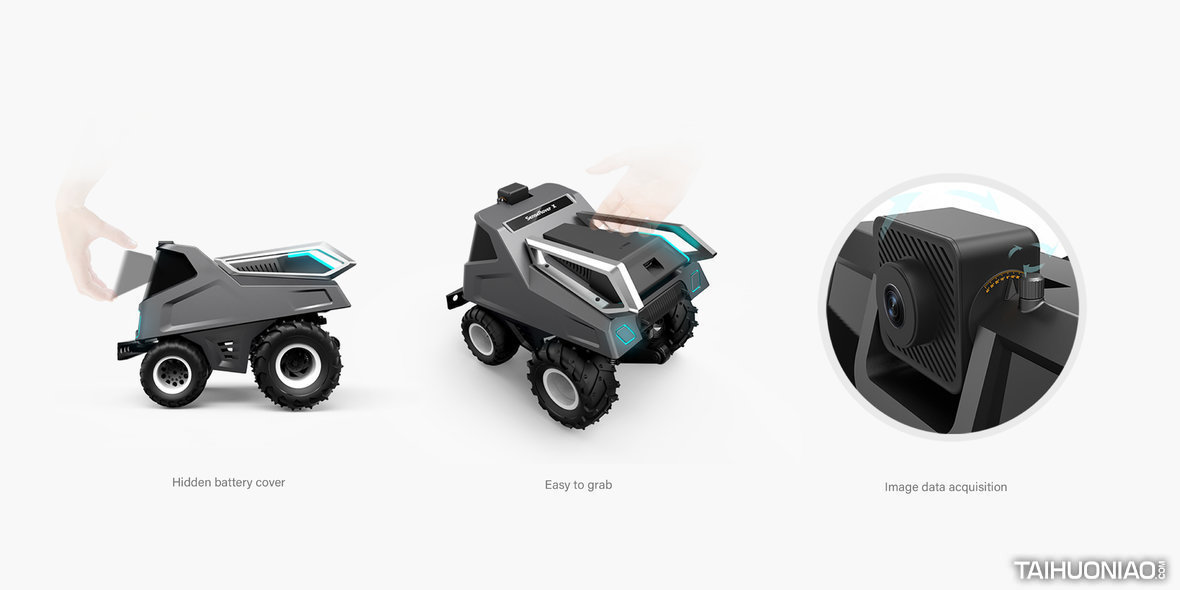 信息数据时代,为了更好的让青少年接触认识大数据的形成,我们设计了一款智能数据采集遥控汽车。这款车针对人群是初高中对科学和汽车有一定爱好的学生。 它可以在平时每次训练过程中,通过智能摄像头对所处环境的图像信息自动采集,并将记录每次操作过程中的车转向和速度。并将记录信息逐渐形成一个数据库,下次遇到相似地形时,模型车可以自行完成自动巡航,避障等功能。整个过程就是一个简易的AI原型制作过程,让学生体验到无人驾驶中数据采集、模型训练和自动驾驶测试的研发全过程。 在外观造型上以科技+轻盈为主题采用仿生设计手法,以“蝉”为基础形态。车体前脸的大面积视窗主要功能方便电池的取出而又不失科技感。背部两翼金属支架模拟蝉的翅膀,主要功能是方便车体被拾取;枪灰色的金属质感与灯光的运用其目的也是为了突出该产品的未来感。