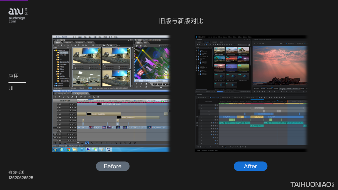 中科大洋旗下专业广播影视级非线性编辑工作站,用户包括CCTV等企业。随着硬件的快速发展,该系统需要一套迎合4K分辨率时代的交互界面,4K是此次迭代的重点。为了维持用户长期的使用习惯,我们将在有限范围内进行视觉提升,提升的同时尽可能减少改变,使老用户能够立即上手操作,在新旧版之间顺畅过渡。