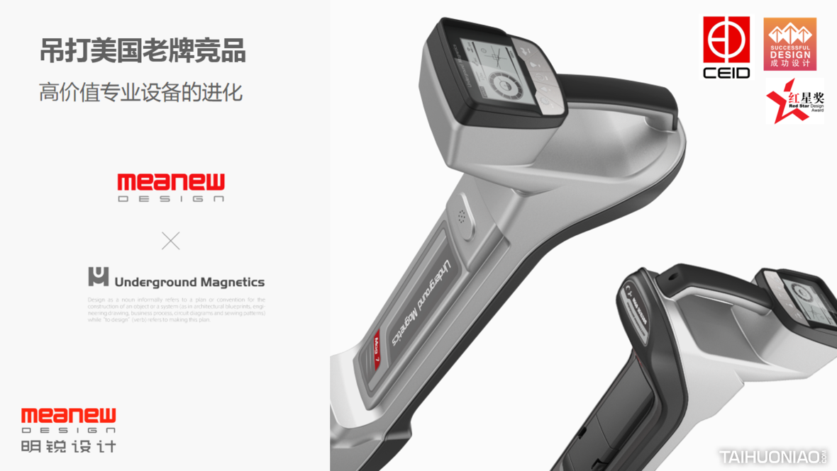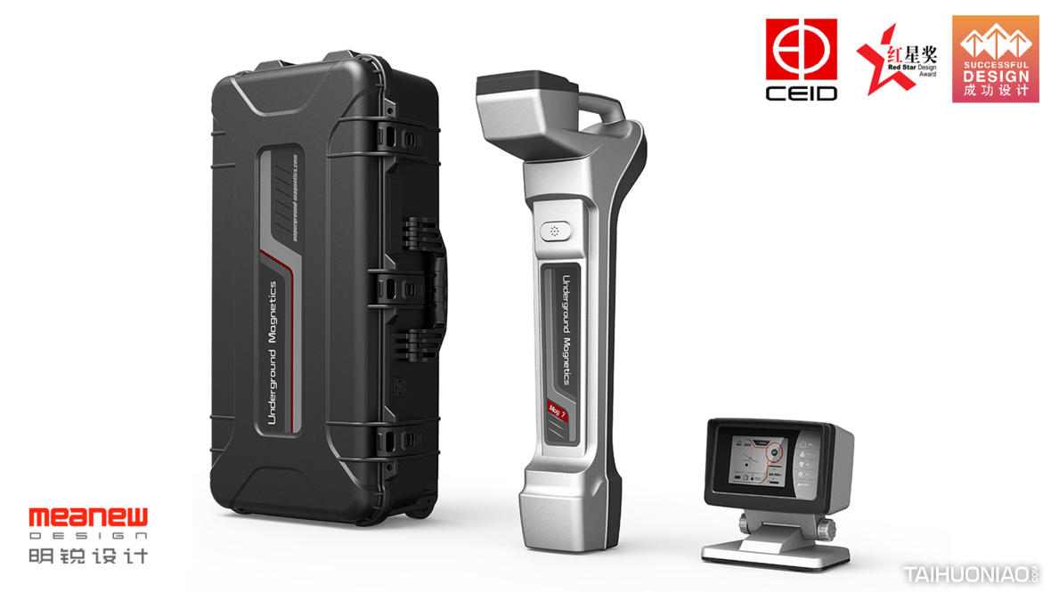 明锐工业设计原创 MEANEW DESIGN | 本产品可以在不挖开地面的情况下,实现多功能测量,定位精确;在充分考量使用过程中人机工程学因素的前提下,采用流畅有力的设计语言与高品质的表面处理工艺,并将设计语言贯穿一系列配件之上,树立了产品身为行业顶尖型号的高端气质。