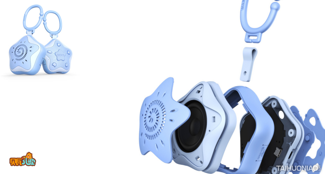 贝瓦宝宝故事机沿用贝瓦人物形象为依托,整体设计保留最大化的人物形象使产品拟人化减少产品感,注重儿童与家长的使用体验采用双导向使用设计。儿童为主使用者,特别突出儿童的常用功能模式切换和下一曲于便捷拍打的侧面大按键,家长常用暂停播放键,收藏键及音量加减等放于拇指区域方便用力的正面区域,清晰准确。不常用按键灯光锁定,音量锁定,蓝牙连接键,开机键,T卡等放于底部区域,减少误操作。特别的使用隐藏式喇叭,以朝向使用者的肚皮处内置喇叭,避免了人物脑后开孔的不合理朝向和美感的破坏,在产品造型耳朵,头发,尾巴,耳机及装饰项链能量星等突出的部分采用的环保硅胶的材料,对于儿童咬拽时安全防护,温和贴近儿童。产品给人积极欢乐动画形象出现眼前,成为亲近儿童的小伙伴。