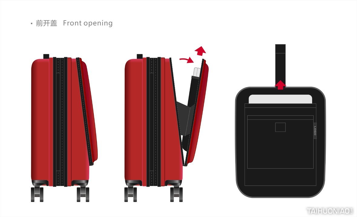 设计特点: 1. 极简设计,软硬结合: 箱体构造简洁而富有立体感,材质方面同时融合了面料和ABS各自的优势,刚柔并济。 2. 前开盖结构,快速取物: 将电脑等常用物品的储藏空间独立设置于箱前盖内部,和主仓分离,拿取物品更加方便快捷,同时,也充分地保护了使用者的隐私。 3. 风琴结构,立体扩容: 拉开风琴结构的拉链,可扩大箱体厚度,从而扩大其容积,大大增加了行李的存储量。 4. 隐藏式拉链口袋: 在前盖设计了隐藏式“一”字拉链口袋,即丰富了立面效果,增加了产品层次感,又有效地提升了存储空间。