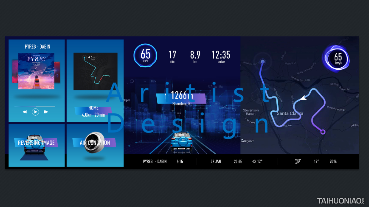 汽车HMI设计 随着物联网、新能源和新技术的发展,大屏形成未来趋势,而汽车中许多的内容将会在屏幕中展现,因此HMI的设计和交互成为衡量一辆前卫的汽车是否具备竞争力的标准。 此方案设计展现出新型汽车的一种新型交互和与众不同的视觉体验。