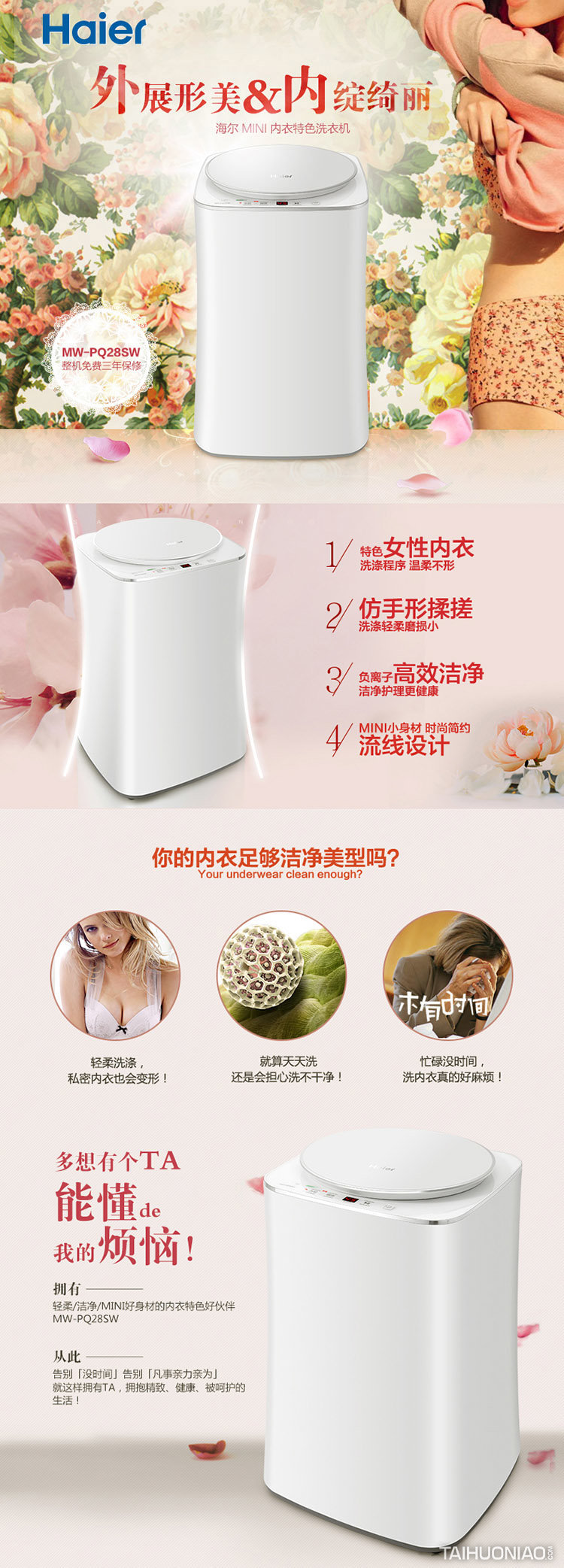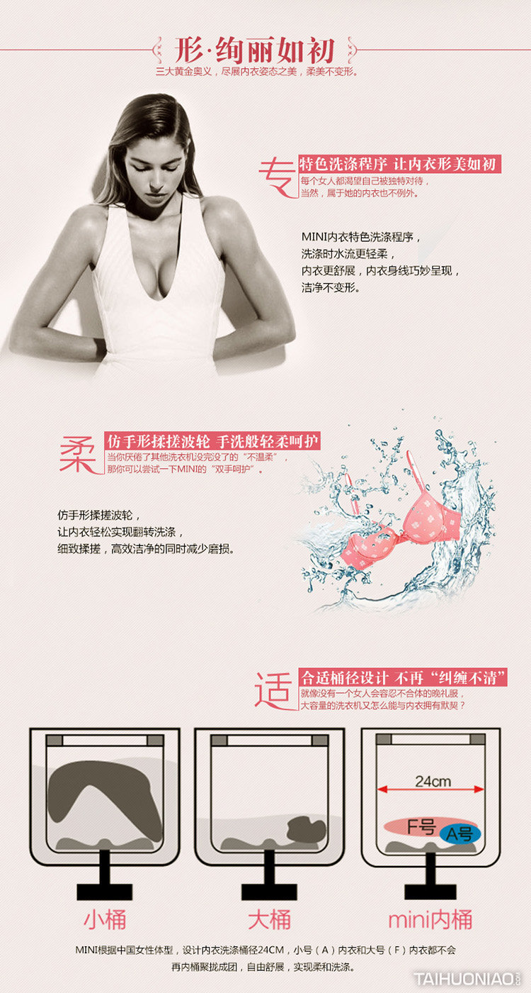 作为家庭中的第二台洗衣机,主要是以衣物分类,健康护理为基础理念。针对婴童衣物进行清洗消毒,让婴童与成人的衣物进行分开清洁,并采用消毒柔顺功能。确保婴童的衣物健康。从女性关爱角度,将内衣与外衣分类清洗。贴身衣物的独立清洁,对女性的健康护理起到针对性作用。产品形象干净简约,不失典雅,符合当代产品趋势。
