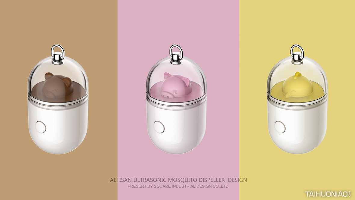 通过超声波原理,模拟雄性蚊的发声,以驱赶吸血的母性蚊,达到驱蚊的作用,同时整个设计结合了动物为切入点,使产品更加有吸引性,让儿童能体验到驱蚊的作用,并且这也是一个非常好的装饰品,通过硅胶部分的延伸设计,使产品有更好的延展性,可以切入不同主题,增加产品的多样性。