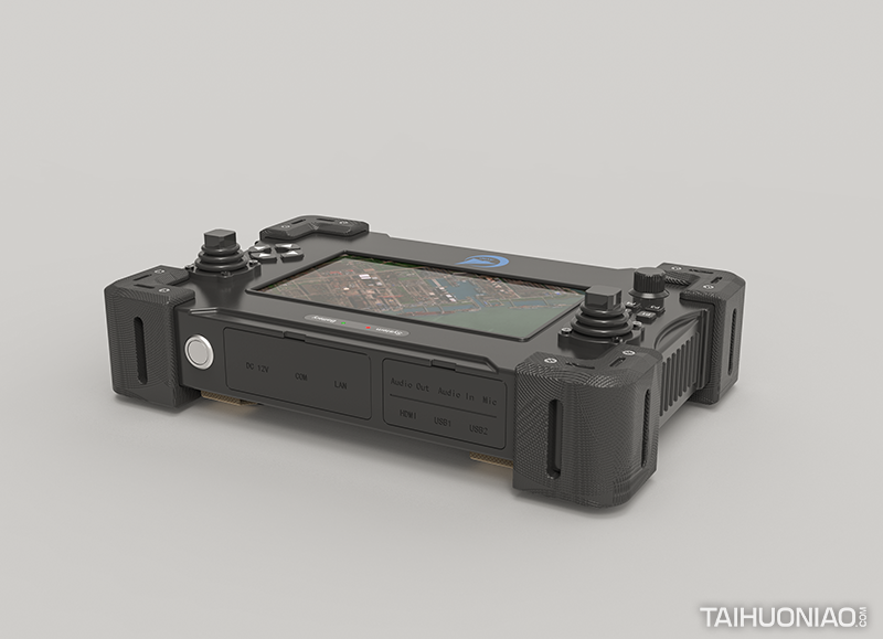 2017年底,与一家工控企业一起为航天工业打造的军用无人机遥控终端,本案例魏设负责外观及结构设计,说实话这类产品外观设计并非首要考虑因素,而是防水等级和抗震需求,所以,整个设备的8个角都有做加固设计,这也是魏设设计的第一个军工产品。