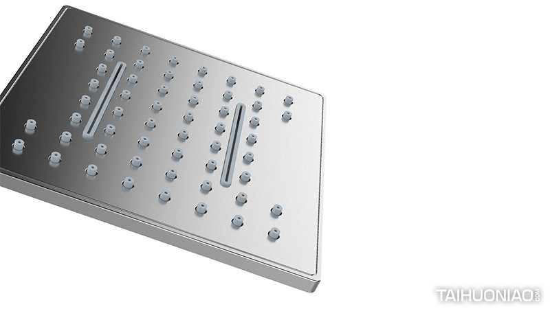 原有设计问题:喷头无法变动,出水方式单一,造型过于复杂,成本较高 。 解 决 方 案:结构上采用圆球内嵌结构,内部插管方式,解决沐浴者洗浴是无法变更喷头方向的难题,在出水方式上采用三级方式,其中以瀑布为元素,扁平长条的出水方式,出水面和出水量都很大,方便沐浴是在最后冲洗是更加舒畅。