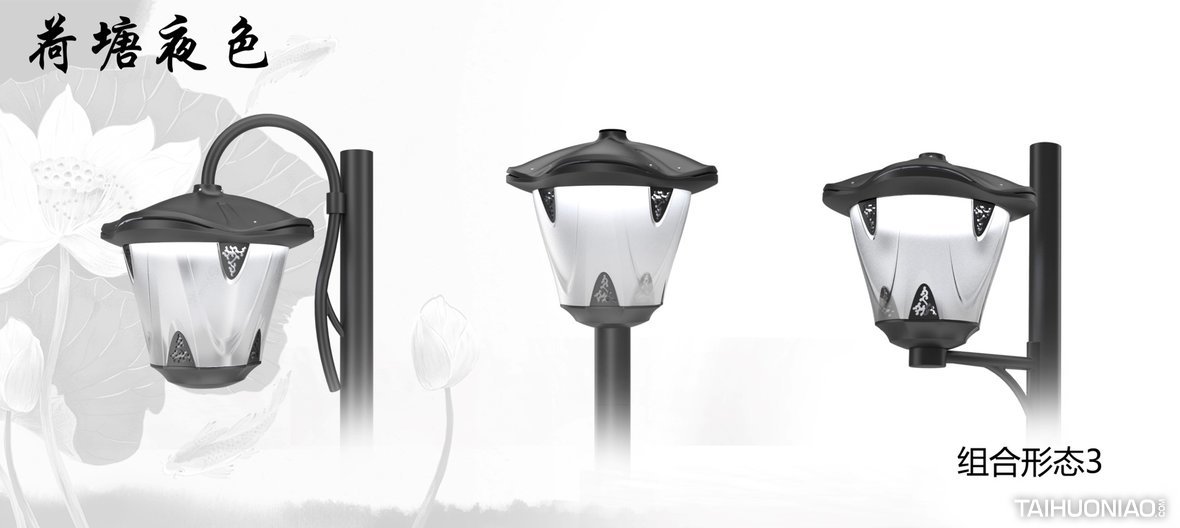 江南中国风LED庭院灯设计。采用内散热设计,丰富的组装模式拓展产品的适用性。