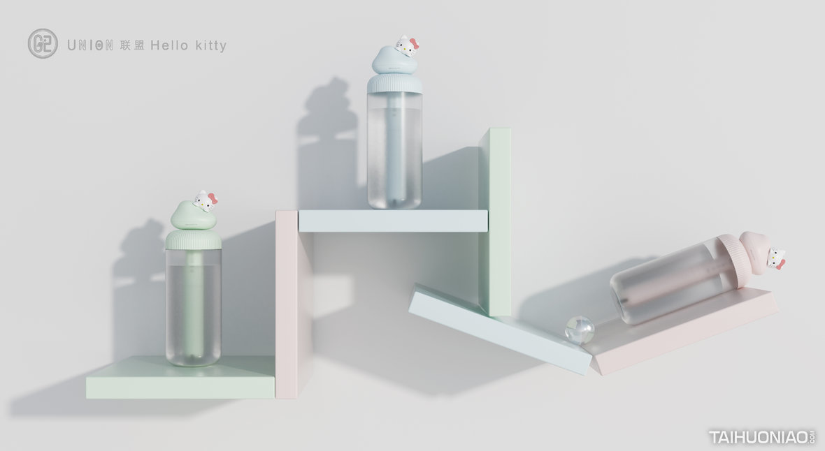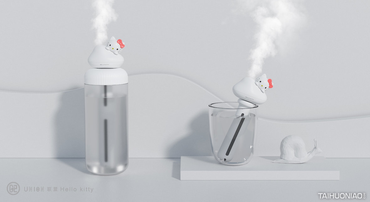 在往前的两年时间里,IP产品市场是一个火热的品类,本设计是一款创意加湿器,以云朵以及客户拿下的凯蒂猫的授权形象为设计点,设计营造有趣的场景化,产品的受众群体是女性。