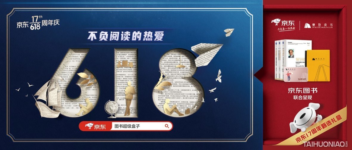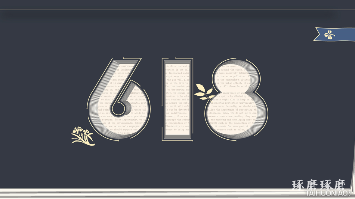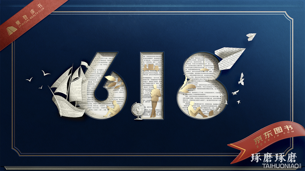 生活——不负珍藏生活的热爱 生活主题,展现了一本象征品质感的精装典藏书,镂空的618超级符号露出书籍的内页。三个数字镂空中透出的文字,分别取材于三本不同时代的经典著作:《红楼梦》《平凡的世界》《三体》,这是不同时代对于经典的共鸣,是华语阅读者的共同记忆。由书页组成的帆船、纸飞机和金箔纸组成的元素穿插在和618超级符号相互穿插,组成了一个个丰富的场景。