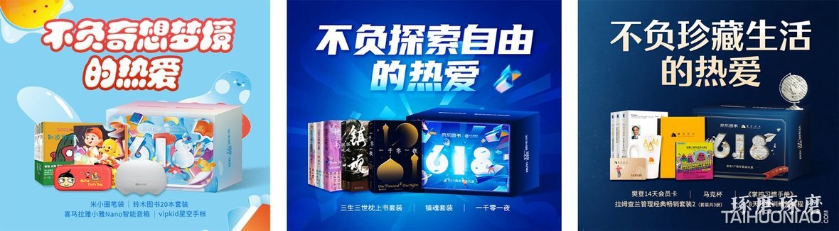 琢磨琢磨承担了京东旗下重要品牌京东图书的超级盒子的视觉设计工作,如何让深入人心的京东图书在众多有趣盒子中 C 位出道,像一本好书一样打动人心,是我们给自己提出的要求。 任务诉求 今年,京东图书以“不负阅读的热爱”为主题,与「喜马拉雅」、「什么值得买」及「樊登读书」共同合作,特别推出了针对不同年龄段的礼盒,为5月27日“京东图书特惠日”宣传预热。在概念阶段,琢磨琢磨和京东进行了头脑风暴,希望用不同的材质、配色和元素来表现不同年龄段的阅读诉求,进而引起读者共鸣,使得读者对品牌和活动有更多的认同感。 创意过程 “不负怎样的热爱”与“如何不负热爱”是这次创意核心点的两种选择。 京东图书618主视觉一套3个,分别针对童年、成长和生活主题。好书能够洗涤心灵,涤荡灵魂。关于书的视觉,我们选择了“共情”这条逻辑线,以期视觉能够提供带入感和认同感。 首先,不同年龄阶段对应相应热爱的书籍,用不同种类书籍封面的形式作为盒子视觉框架,显示相应图书品类的特点;用书籍封面来自然呈现“不负阅读的热爱”中“热爱”的具体内容和方式;并在右下角设计了书页或书签翘起的形式,让三幅画面各不相同的同时,又在形式上得到了统一。