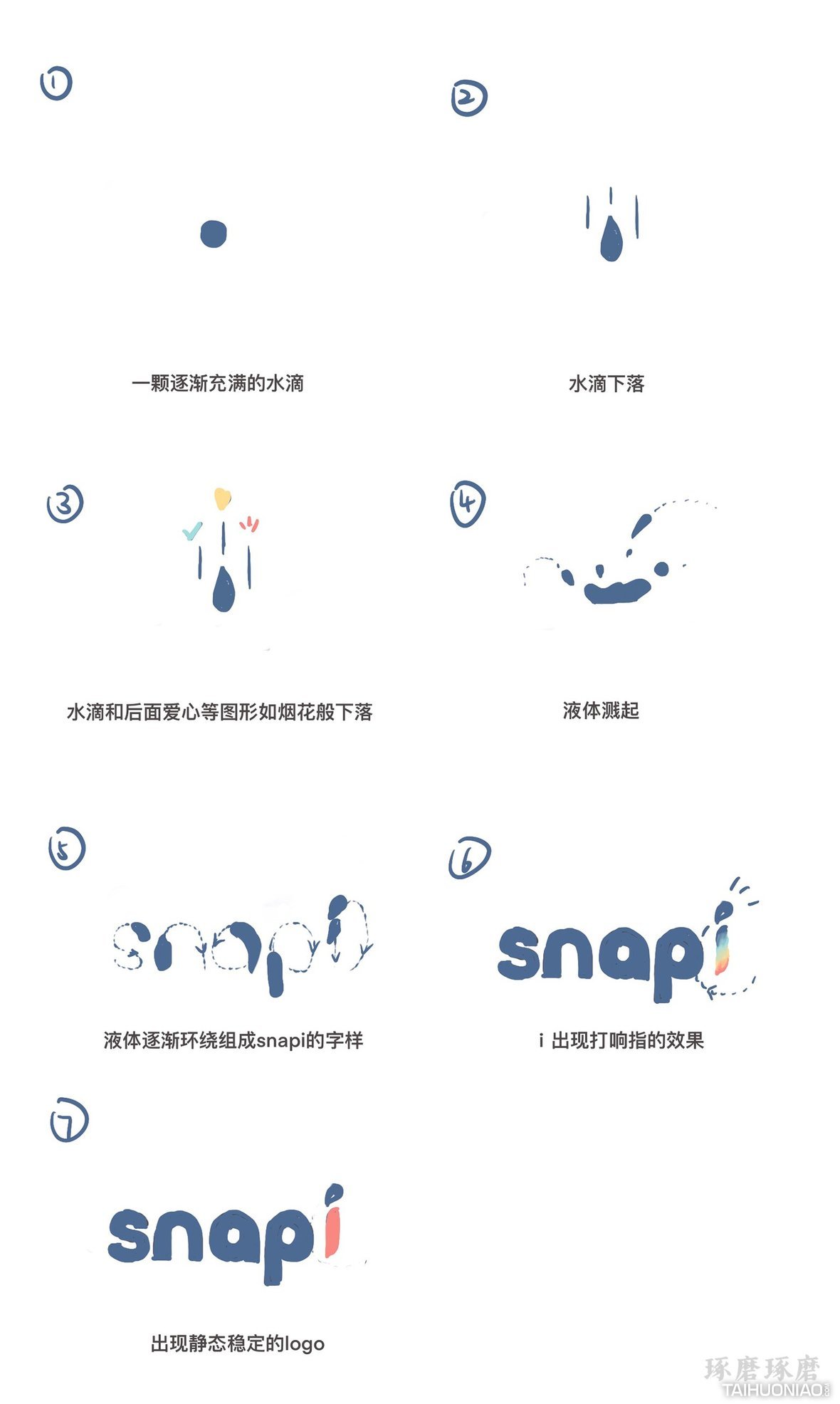 设计理念 品牌名由一个短促洗脑的动词Snap和一个可爱小写的i组成。Snap是一个响指,正是一个完美的品牌仪式,采尿检测后,一个响指,结果直接呈现。把简单、快捷、易用的产品特性融入仪式之中。 采尿检测所用试纸是长条状,设计将产品与标识的i统一起来,进一步增强记忆。作为创新品牌,如何宣导品牌的创新形式和品牌仪式?每次上传检测结果的App开机画面,给动态主视觉以绝佳机会。水滴坠落,响指打出,Snap勾勒,小“i”慢慢显色,流畅的动画,体现了流畅的产品体验。至于上传试纸显色后分析结果时的loading画面,设计也用小“i”中液体慢慢流淌、慢显色的过程体现,让用户期待结果的同时,也进一步地让品牌和产品形态深入人心。