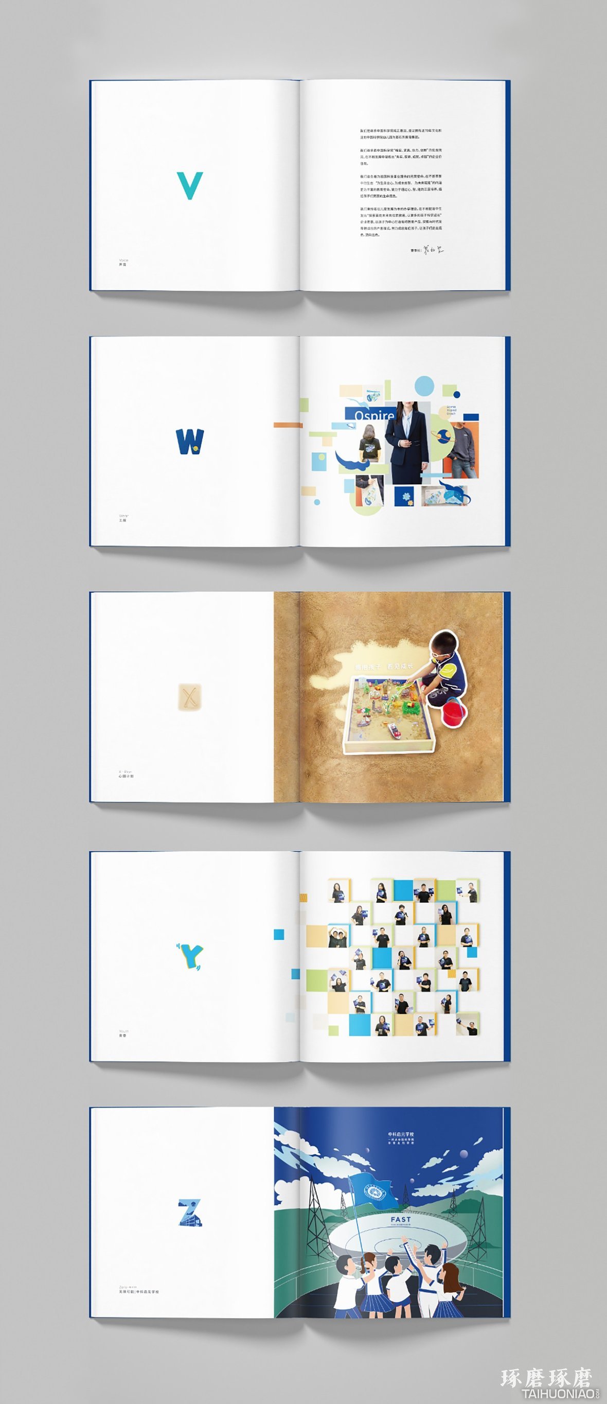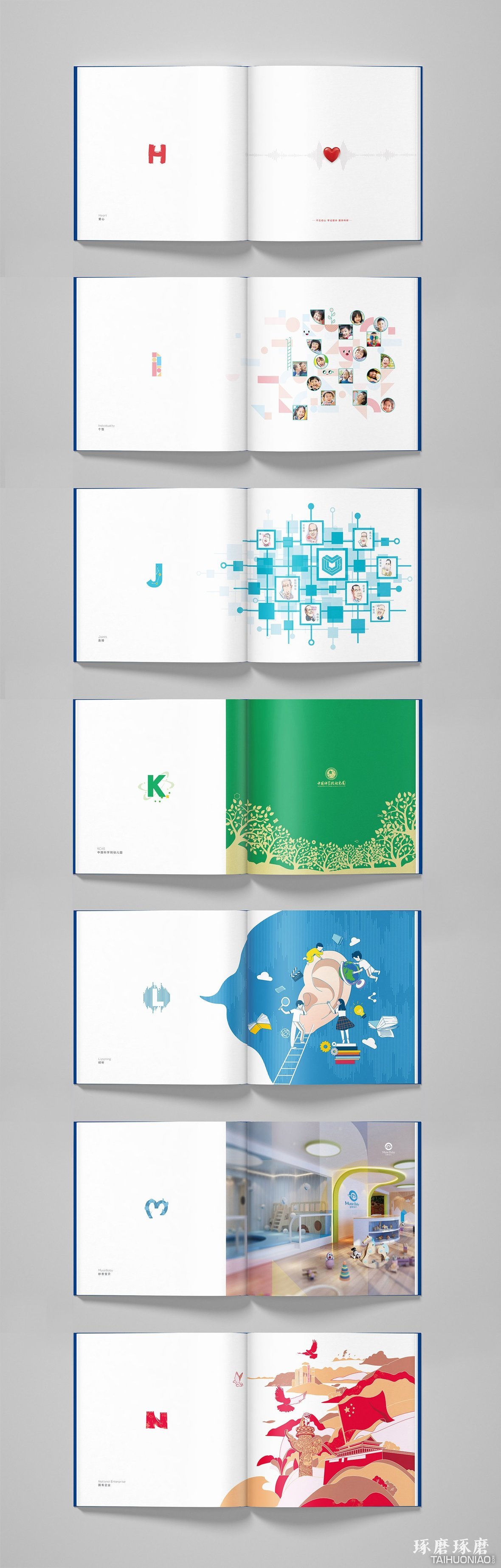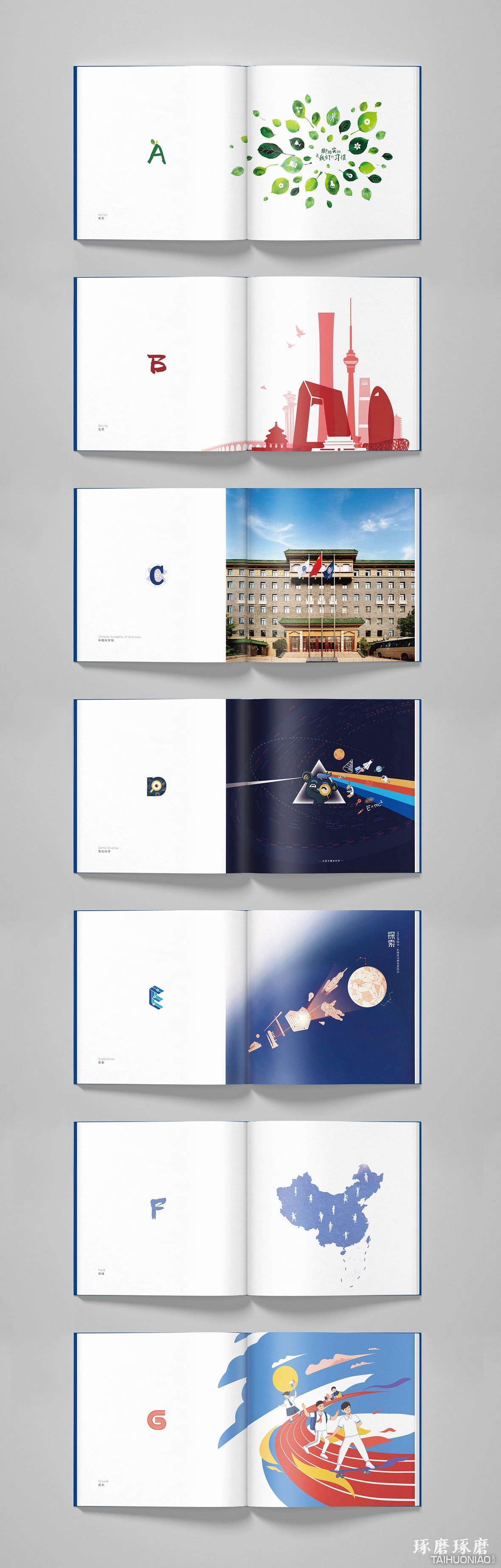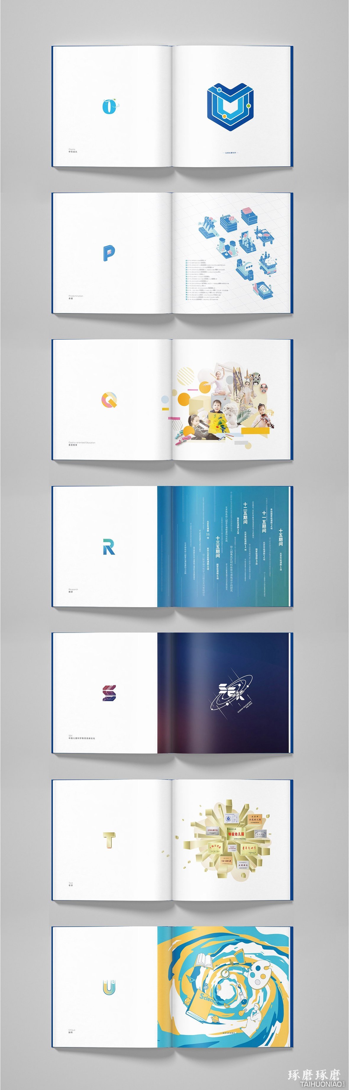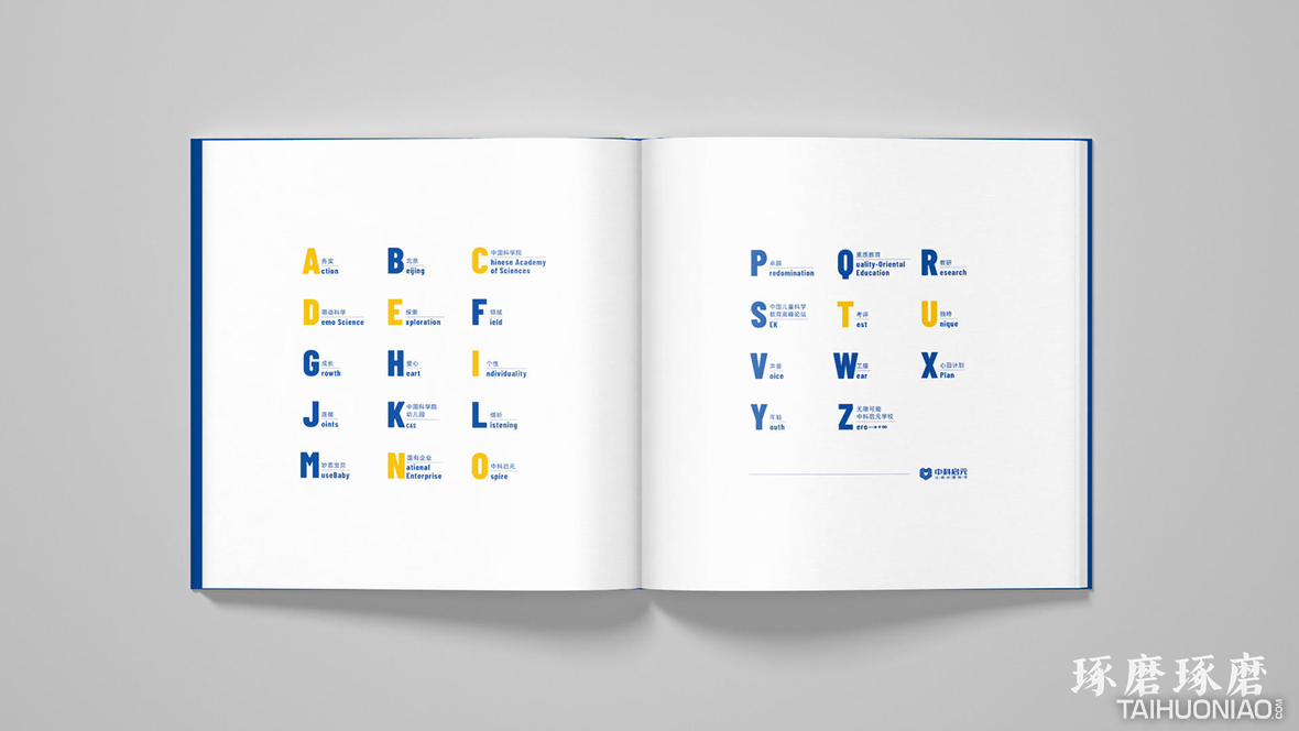 项目背景与设计理念 中科启元是由中国科学院行政管理局设立的儿童教育品牌。本品牌宣传册是用26个英文字母解析的形式,从26个维度全面展示中科启元的特色企业文化、品牌产品以及教育理念。封面由内页所有字母设计汇集而成,同时呼应主旨并突出单词: Education。