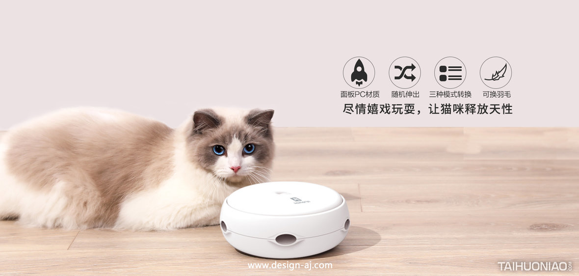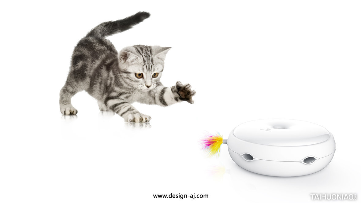 众所周知,猫咪是天生的猎手,为激发猫咪狩猎天性。这款宠物逗猫器设计可以帮助猫咪减轻压力,释放天性、不再压抑,减少猫咪的破坏行为。让他们不知不觉动起来,帮助它们保持良好的体形。智能识别模式,白天随机运行,夜晚自动休眠。六孔随机飞舞的羽毛,外加特有的随机算法,让羽毛运动充满随机性。产品设计灵感来自于美味的甜甜圈,陶瓷般质感的面板设计。产品外观设计极简颜值出众,轻松融入居家环境。
