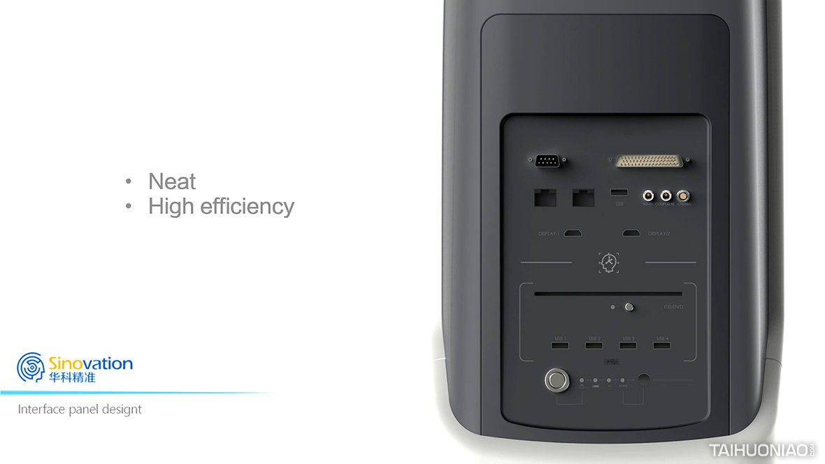 神经外科手术被称为“刀尖芭蕾”,面对精密复杂的人脑,医生的每一步操作都必须精准无误,这无疑是一种考验。令人欣喜的是,神经外科手术机器人正不断创新并越来越多地应用于临床,成为医生的得力助手。上品参与设计的华科精准SR1-3D手术机器人是世界上首款采用3D结构光和HoloShot智能感知技术的手术机器人产品。 新一代外科机器人采用包裹的设计方式,让产品整体更有层次,视觉上更加轻盈,同时将产品运用重色,将产品重心稳定在底部。 简约化的造型,更方便加工制作。 底部万向轮部分采用半圆形设计,更方便的锁住4个万向轮,减少遮挡。