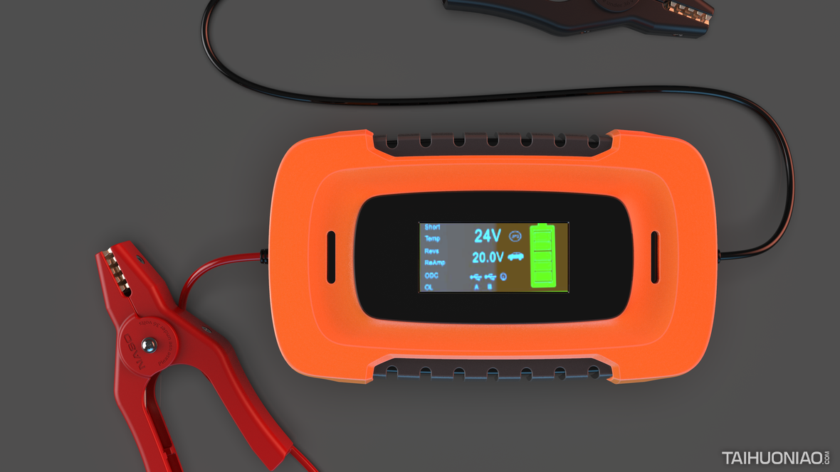 汽车启动电源是在汽车电瓶亏电时用来临时启动车辆进行救援的一种便携式产品。由于使用场景多为户外,因此在外观设计过程中增加了一部分防护性设计。