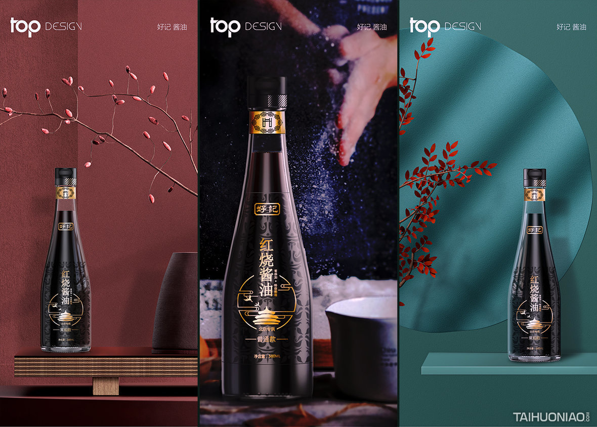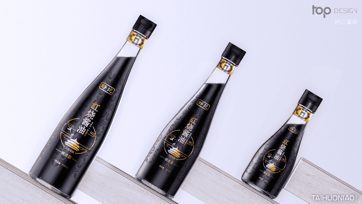 对瓶型的设计理念,大概可以分为4点: 首先,简洁:我们定义瓶型轮廓一定是简洁的,这个简洁是指的瓶型的视觉效果是流畅,顺滑的。这样它带给消费者更轻松,精致的感官体验。同时也符合我们社会大众的审美趋势。 第二,优雅:这个词之前在调料品中是不多见的,我们把它提取出来,一是目前精致生活理念的快速兴起,更加的年轻人也愿意展示自己的手艺,那么他们对调料品的定义就不再是单一的调料,而是作为精致生活的一个延展;同时好记酱油主要的价格区间还是要高于常规酱油的,我们希望除了口味以外,在瓶型上也可以体现出好记酱油的高端定位。 第三,可延续性:我们目前是为好记去开发第一款瓶型,但是这绝不是只有这一款。那么我们的瓶型就要有这样一个理念,它要满足我同一产品线的不同规格的变化;也要满足好记品牌后期推出其他产品线的瓶型延续性需求。 第四,人性化:酱油瓶最终还是要由消费者去使用的,那么如何更好的满足各类不同的用户的无数次拿取,倾倒的舒适度,其实也是最本质的问题。为此我们考虑了瓶型的高度/直径以及规划用户的手握位置可不可以满足舒适性的需求等。
