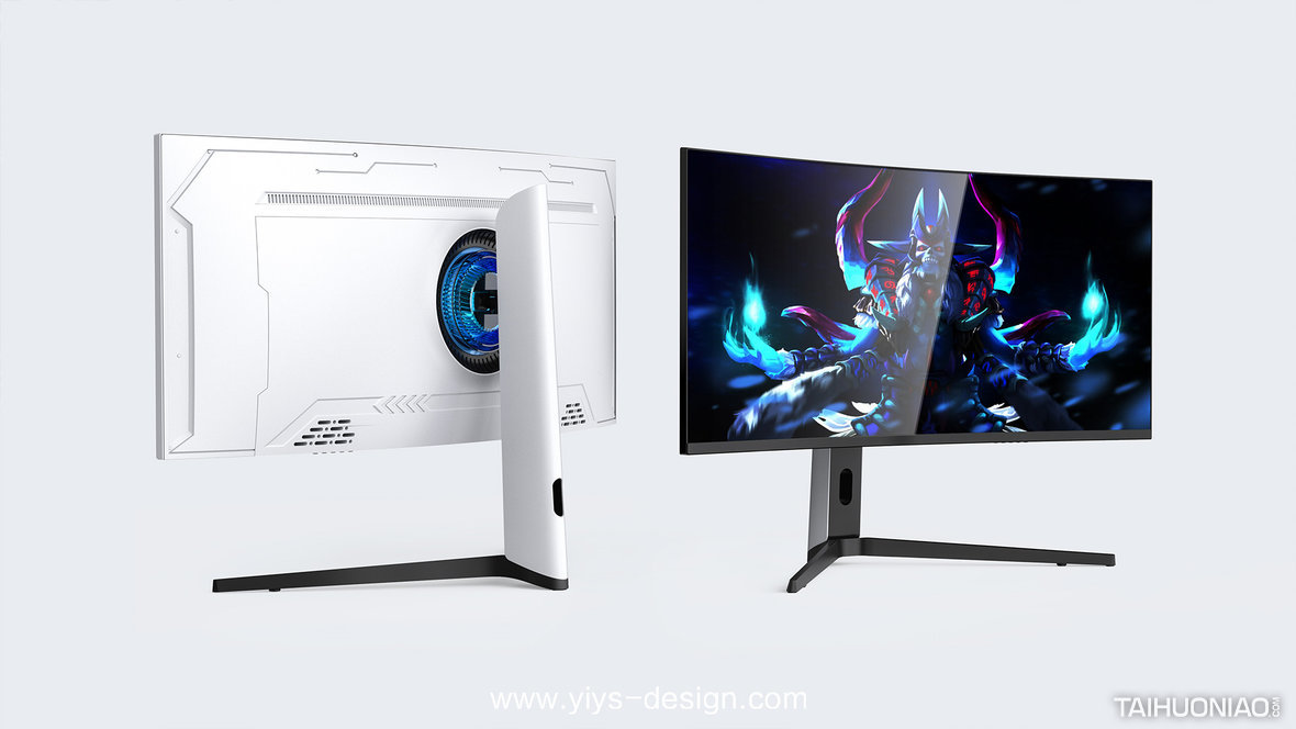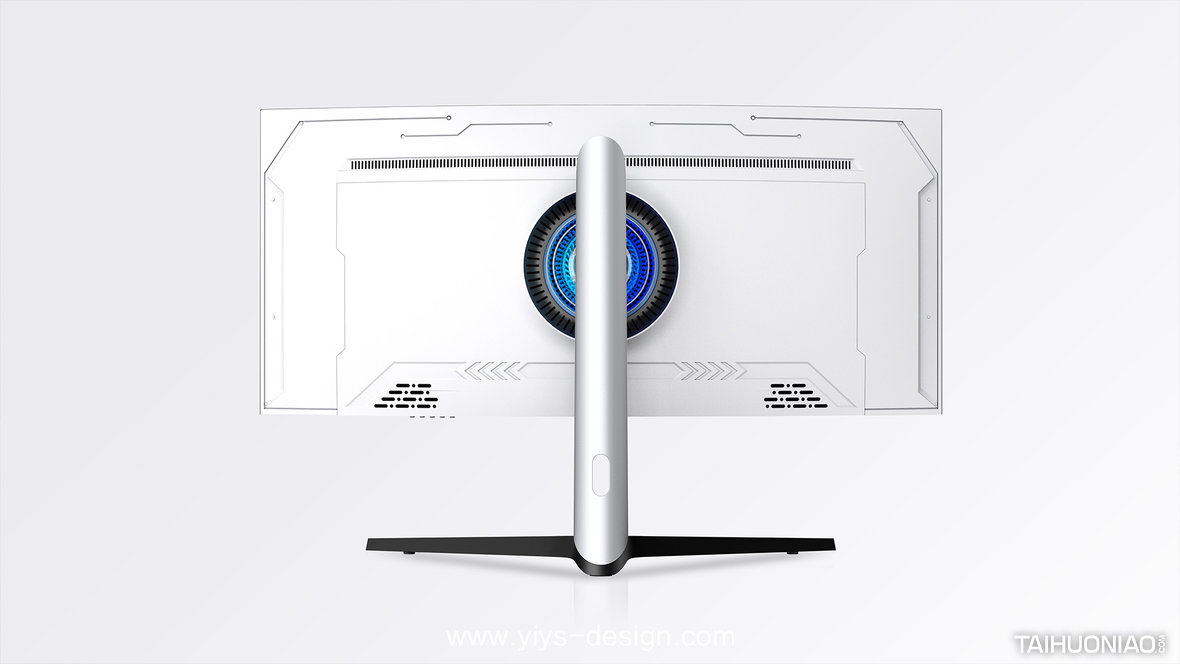 设计灵感来源于"虫洞“,背部散热孔+核心光环照明设计,为产品增添神秘色彩,赋予产品无穷的能量;节奏有序的动感线条造型,彰显产品的科技感与电竞气质;底座支架造型设计满足稳定功能的同时可凸显了产品的时尚感;可调节角度设计,让消费者拥有舒适的观赏角度;