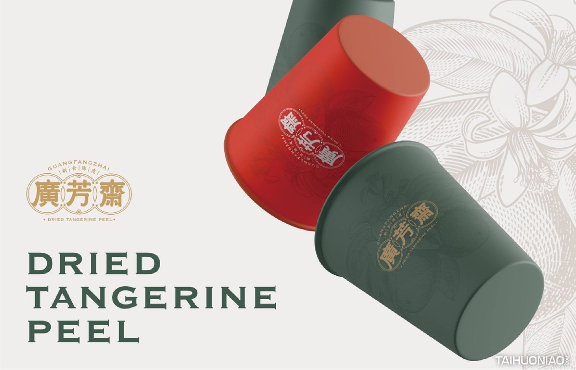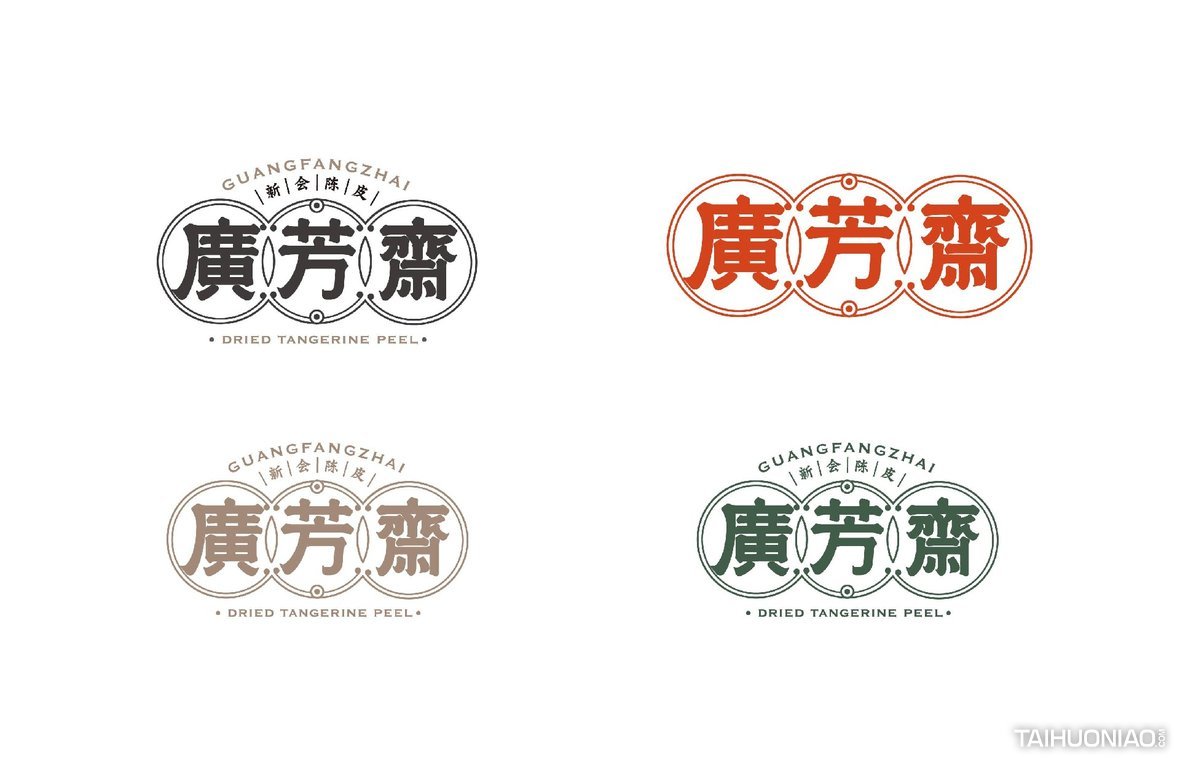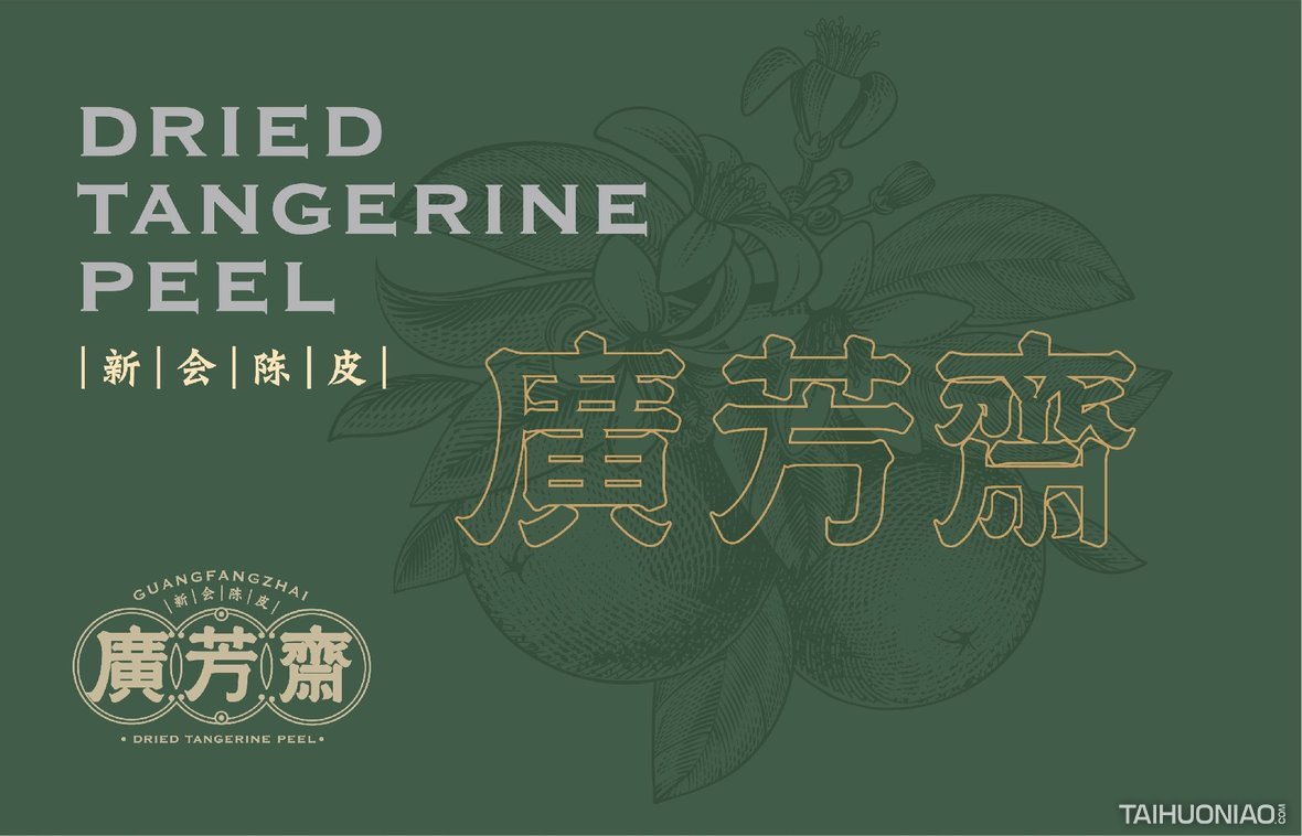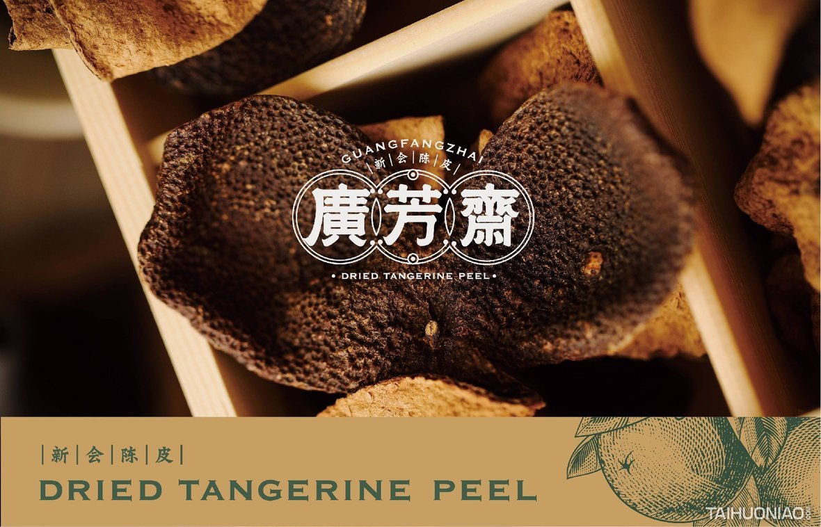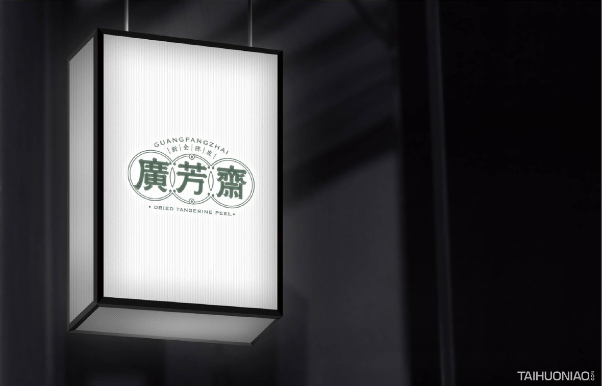 陈皮以广东所产为佳,而新会陈皮,又是广东陈皮中最好的。新会陈皮是广东省江门市新会区特产,中国国家地理标志产品。广芳斋作为一个有香港血统的新会陈皮品牌,需要做的是融合历史文化与产地元素,最大化表达产品特点。 品牌标志设计—— 以复古港风为切入点,来表现产品的历史与香港血统,可见无论从字体还是板式来看,都有一股港味。