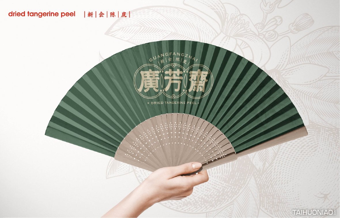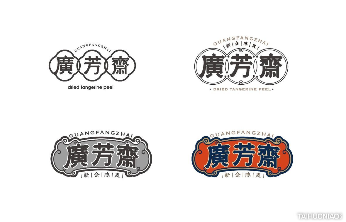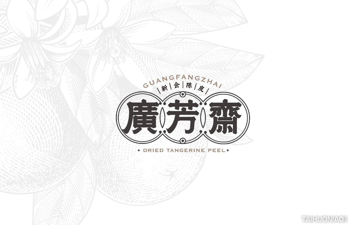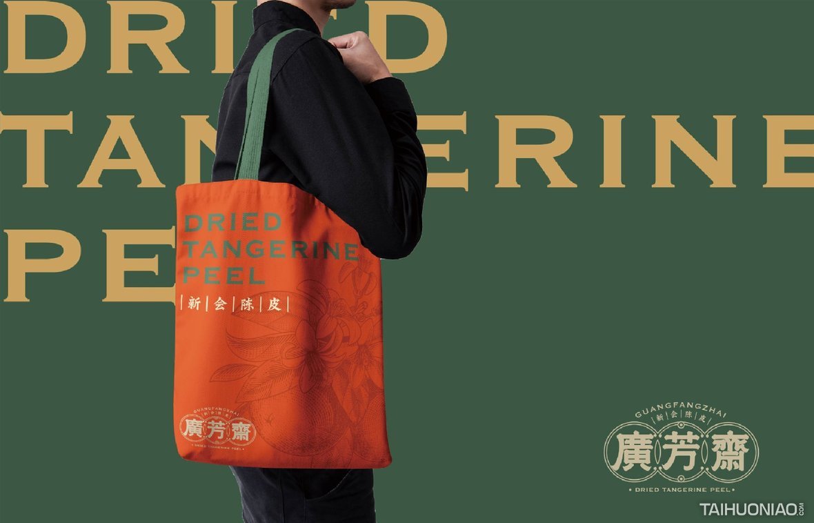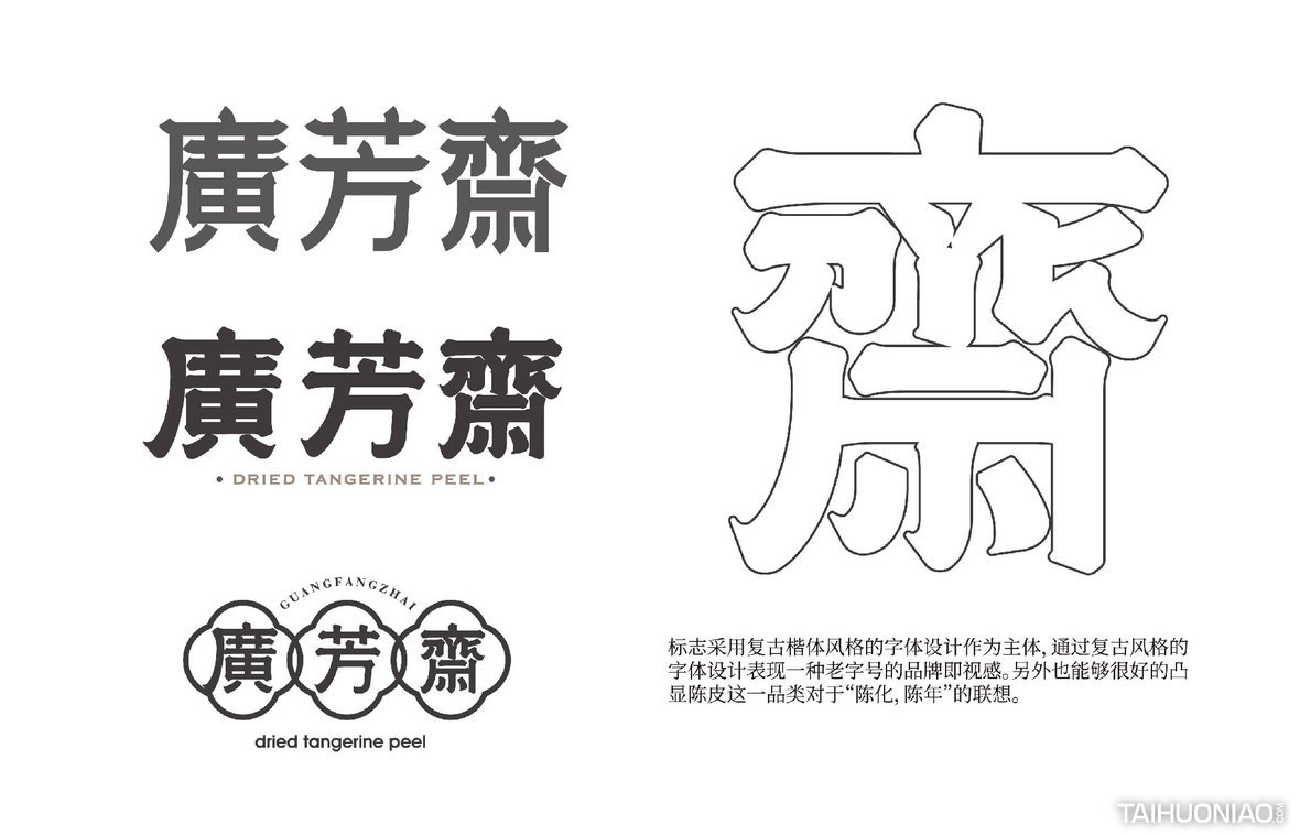 陈皮以广东所产为佳,而新会陈皮,又是广东陈皮中最好的。新会陈皮是广东省江门市新会区特产,中国国家地理标志产品。广芳斋作为一个有香港血统的新会陈皮品牌,需要做的是融合历史文化与产地元素,最大化表达产品特点。 品牌标志设计—— 以复古港风为切入点,来表现产品的历史与香港血统,可见无论从字体还是板式来看,都有一股港味。