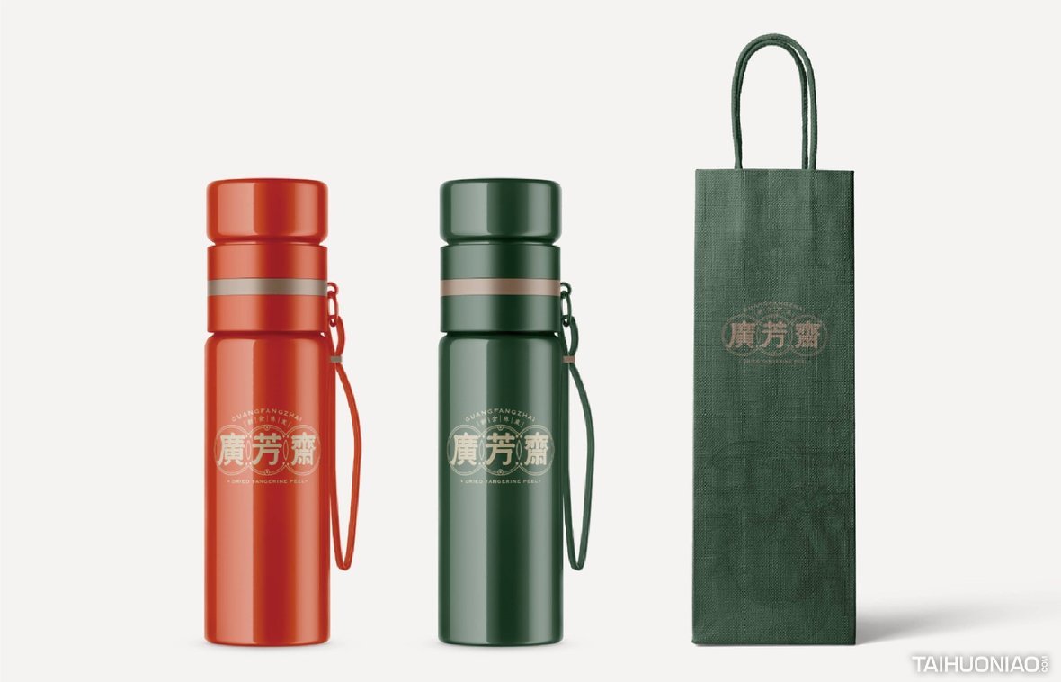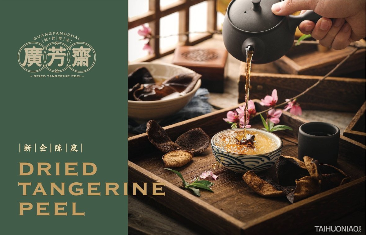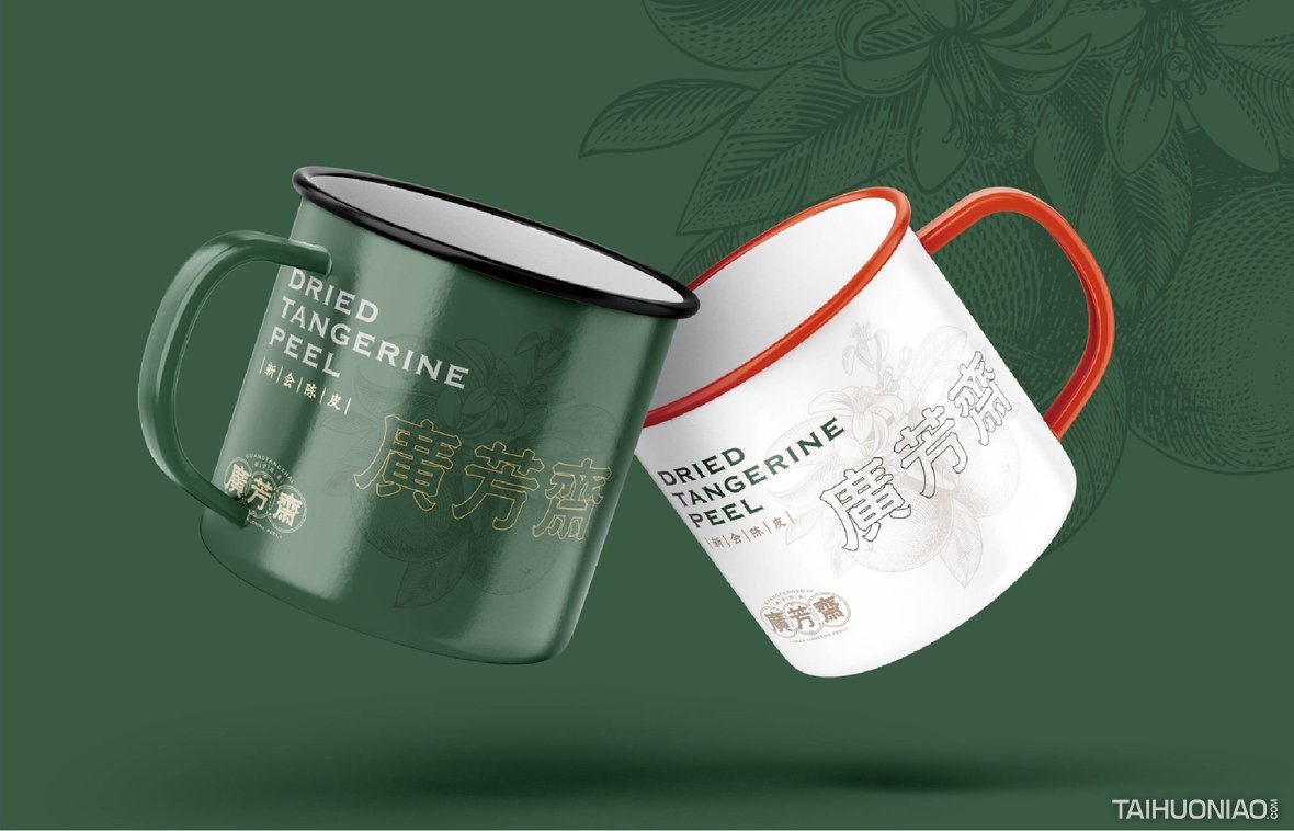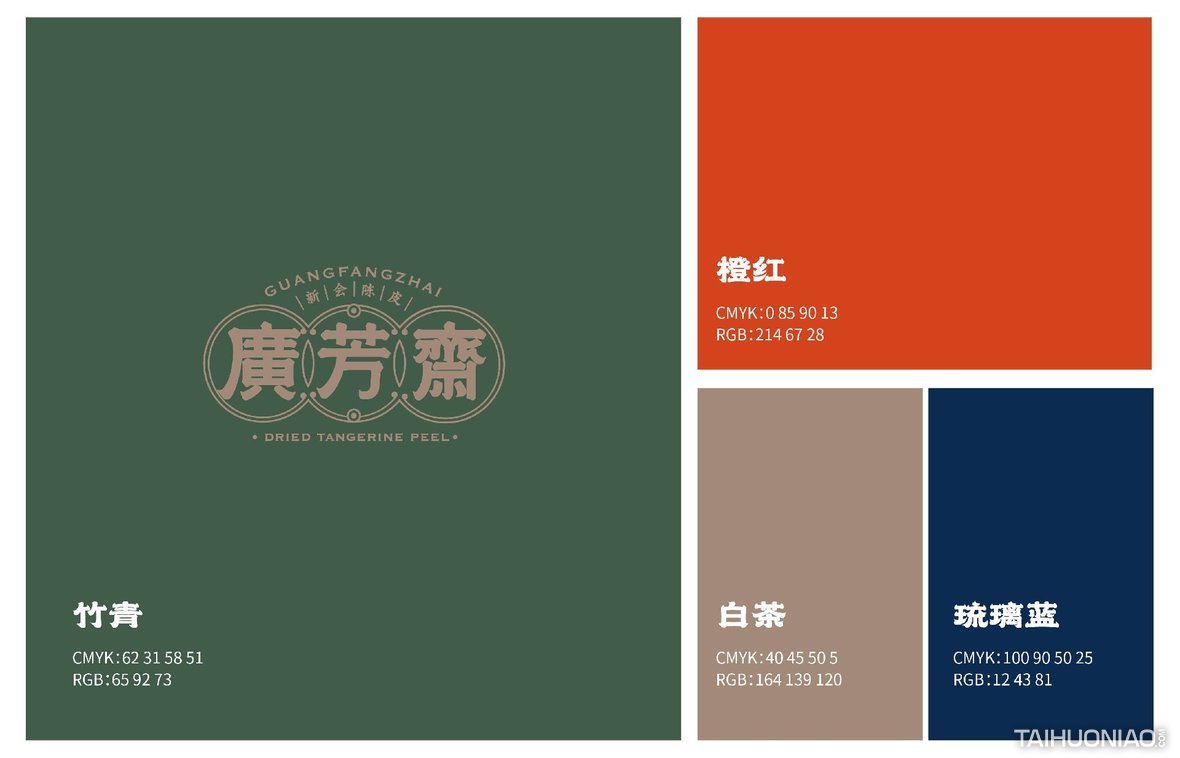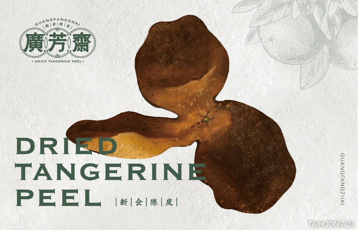 陈皮以广东所产为佳,而新会陈皮,又是广东陈皮中最好的。新会陈皮是广东省江门市新会区特产,中国国家地理标志产品。广芳斋作为一个有香港血统的新会陈皮品牌,需要做的是融合历史文化与产地元素,最大化表达产品特点。 品牌标志设计—— 以复古港风为切入点,来表现产品的历史与香港血统,可见无论从字体还是板式来看,都有一股港味。
