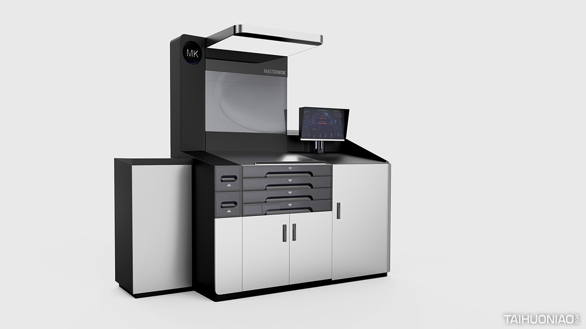 产品策略 / 工业设计 / 样机加工 2020 上品对大型商业数字喷墨印刷机行业进行产品矩阵分析发现,目前大都处于基础的功能实现层面行业,天津长荣作为亚洲唯二掌握该技术的企业,将视角瞄准企业场景下的印刷机这样一个细分赛道。以打造高端、可靠、专业的品牌形象为设计目标,外观上采用黄金比例分割,确保视觉的平衡美感。简洁利索的体块穿插组合,对功能区进行合理划分,同时不失整体感。提取平直,舒展的商业气质融入产品设计,结和蓝灰配色及灯光的交互营造浓厚商业前卫的氛围,同时增加环境的适配度。