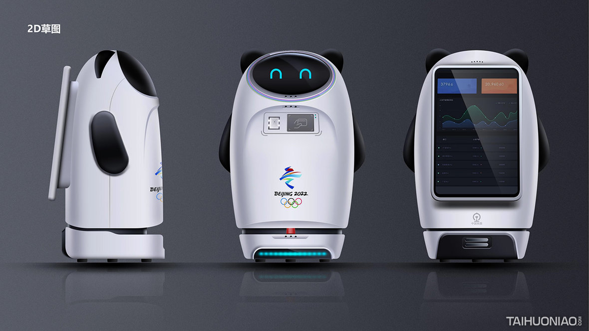 产品定义 / 工业设计 / 结构设计 2021 这是一款为北京冬奥会京张铁路设计的一款服务机器人,我们提取奥运吉祥物冰墩墩的造型特征,进行再设计,让运动员在前往张家口赛场的路途中提前就能感受到北京的热情。