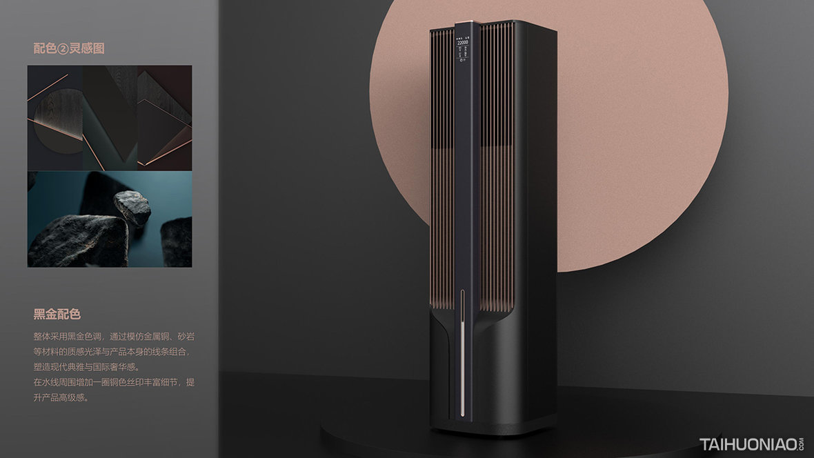 产品定义 / 软硬件开发 / 工业设计 / 结构设计 / 样机制作 2021 一个新物种必定有它不同寻常之处,我们希望营造一种更高阶的文化,在设计之初,我们出发点是此产品因定位给人的第一印象感觉,因为它的使用场景和定位人群会使得这个产品外观上的第一印象是大气高端,且在风格上是有别于普通白电产品。当然我们设计新产品外观时,我们希望它是与这些高档场所是和谐一体的,所以我们也结合了需多高端场所中所存在的设计元素,并将整个出风格栅形状延续到底部,让整个产品的视觉冲击力更强。在设计调研阶段,我们给桌面款用户的定位多为工薪白领阶层。而在白领们每日的忙碌工作之中,渴望大自然成为大家的心声。此方案就是想通过产品给桌面带来自然的生命活力。并与品牌独有技术相结合,让用户仅通过加水就可以得到干净舒适的空气,如同回归自然一般,享受生活,享受科技。复古它有着经典的历史韵味,给人一种难以忘怀的感受,有着原汁原味的历史感、自然感。 现在的复古设计要融合现代的风格,对产品来说是一个可发展和借助的融合条件,从而得到设计共鸣和人们的认可。