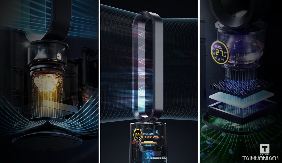 该款为美国舒乐氏定制设计的离子冷暖无叶风扇,是一款融合了许多创新科技的精密的产品。在产品外观设计上,以紫色与浅蓝色的经典配色为主调,配合金属质感和弧形设计,呈现出整体的高端感。同时,离子冷暖无叶风扇的底部采用散热孔设计,不仅保证了产品的散热效果,也更好地呼应了产品主打的无叶设计理念。风扇的触摸屏设计,更是提升了产品的便捷性和智能化感受。在科技创新方面,离子冷暖无叶风扇更是体现了产品的精密感。它拥有凉风、暖风、净化三合一的强大功能,而且内置高效离子净化技术,可以将空气中的细菌、病毒、甲醛等有害物质快速过滤净化,带来更健康的空气环境。同时,无叶设计也大大减少了使用过程中噪音的干扰,为用户带来更为安静舒适的体验。这款离子冷暖无叶风扇,是一款从外观到科技创新,都展现出精密和科技感十足的产品。