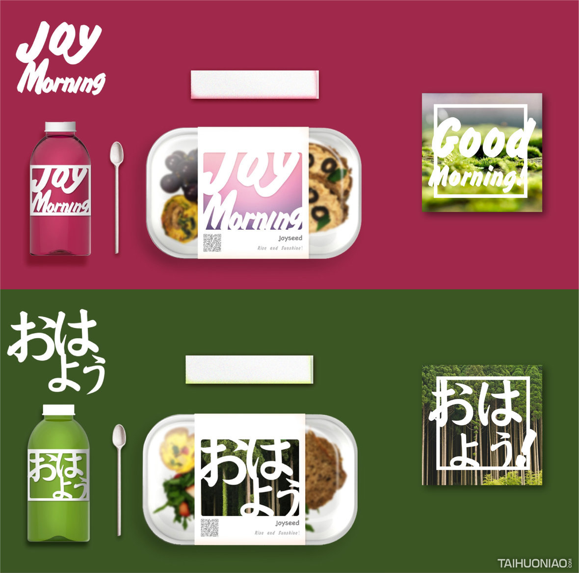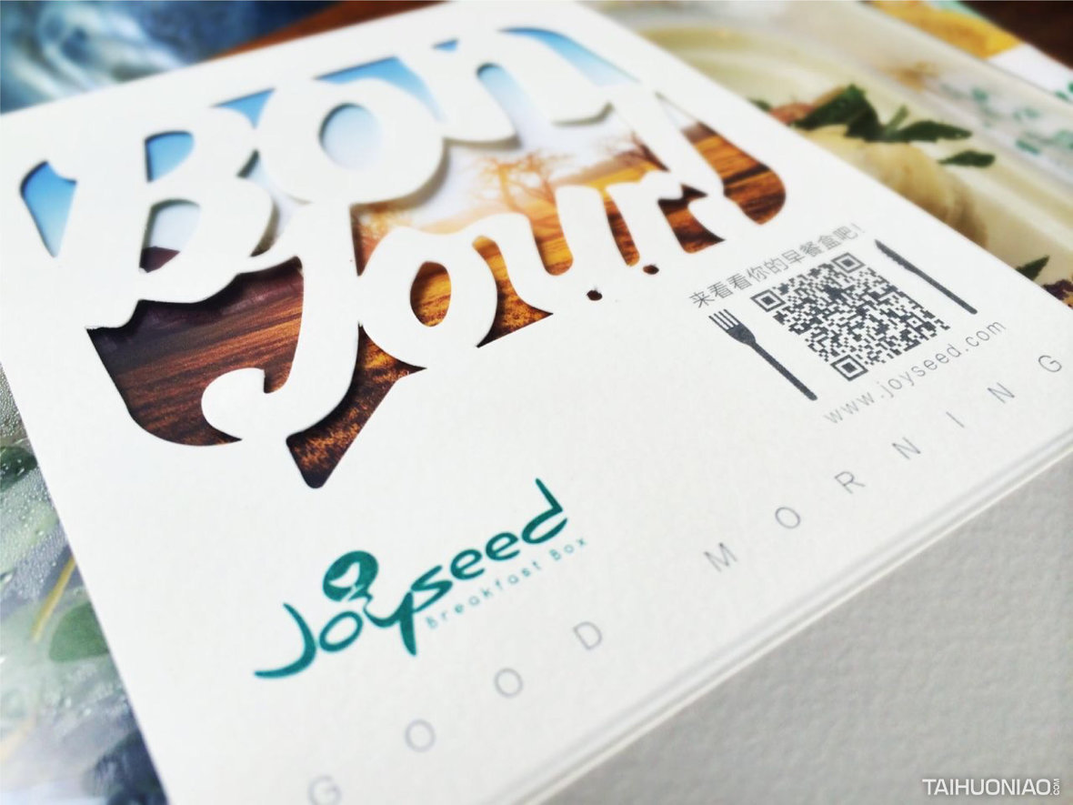ART DIRECTOR : 谢大欢 DESIGNER : 胡雨潇 YEAR : 2015_10 CLIENT : JOYSEED 我们为JOYSEED提出“吃到早上那些令人愉悦的味道”作为品牌基因,让早餐通过包装每天与你说声“早!”r设计用到的手法是修辞手法中的“通感”。你吃到的是:雾气的味道,日出的味道,鸟鸣的味道,初雪的味道...设计的概念同时也启发了主厨的创作,大家围绕着这样的主题,将记忆中那些美好的,愉悦的味道通过视觉,味觉,触觉,嗅觉甚至听觉传递出来。透过设计,消费者也感受到了我们设计的初衷,为Joyseed自发的建立了一句“发现早上的美好”品牌语,用于传播。这是一个关于美好的项目...