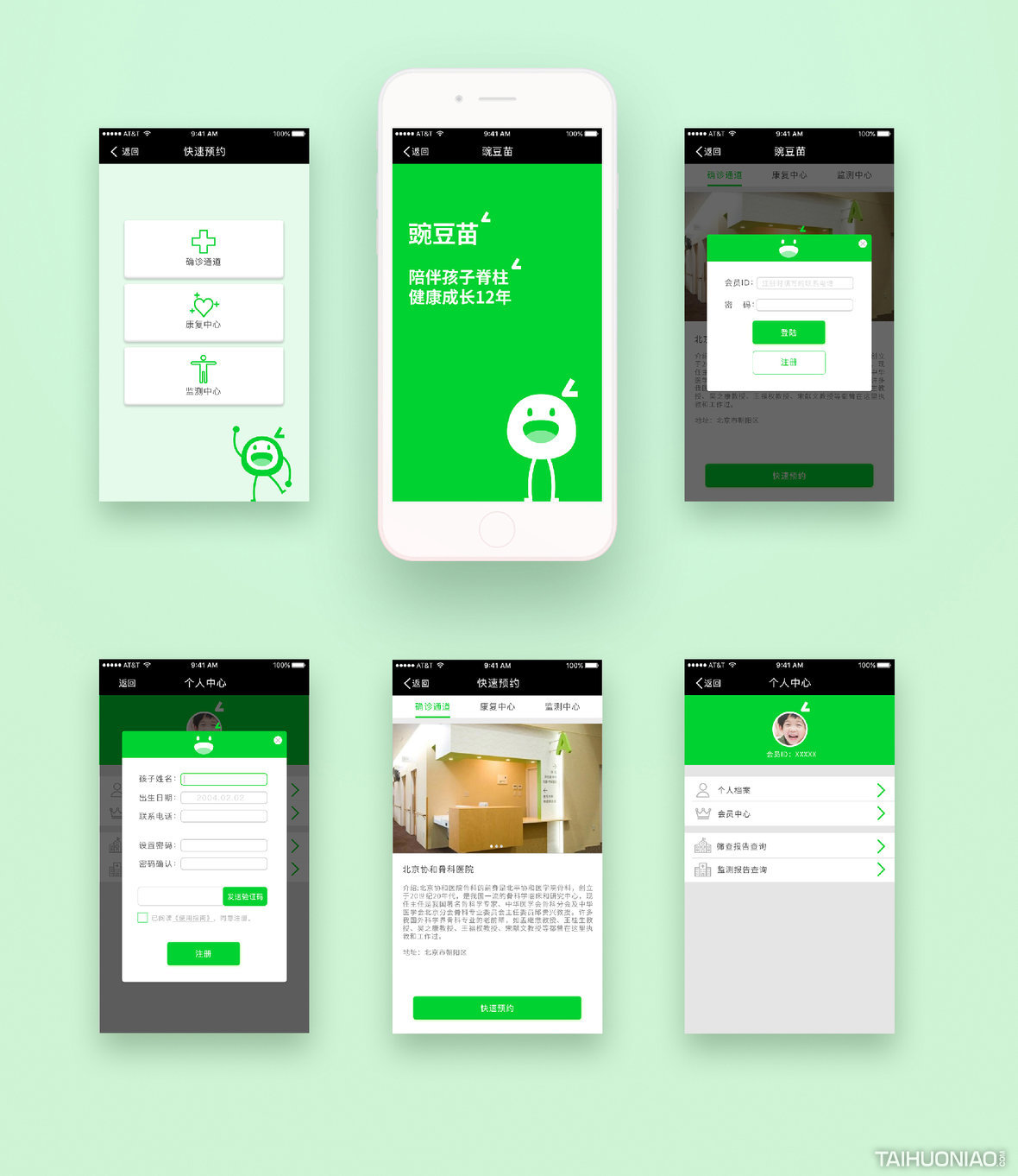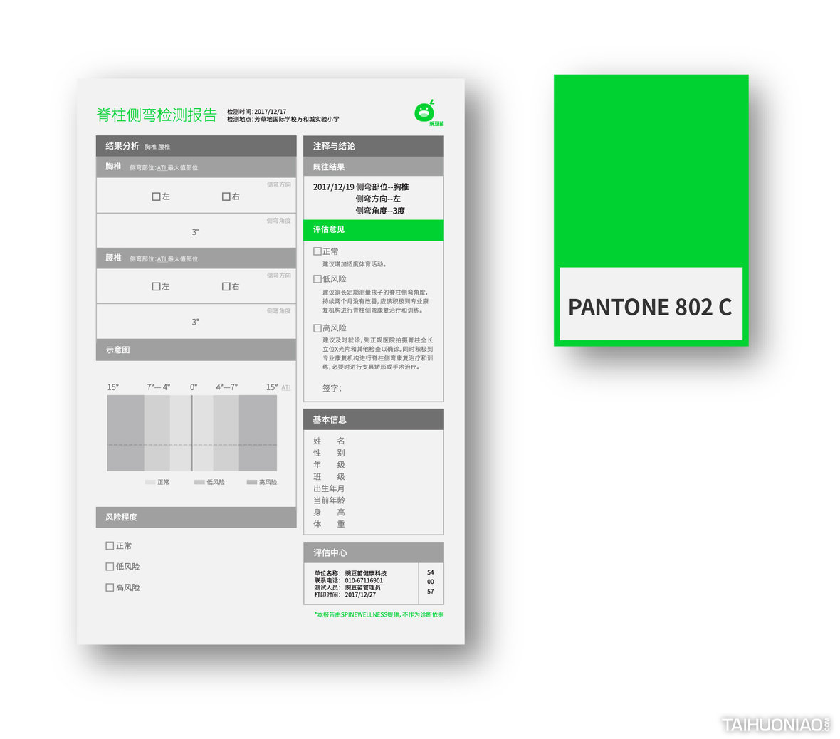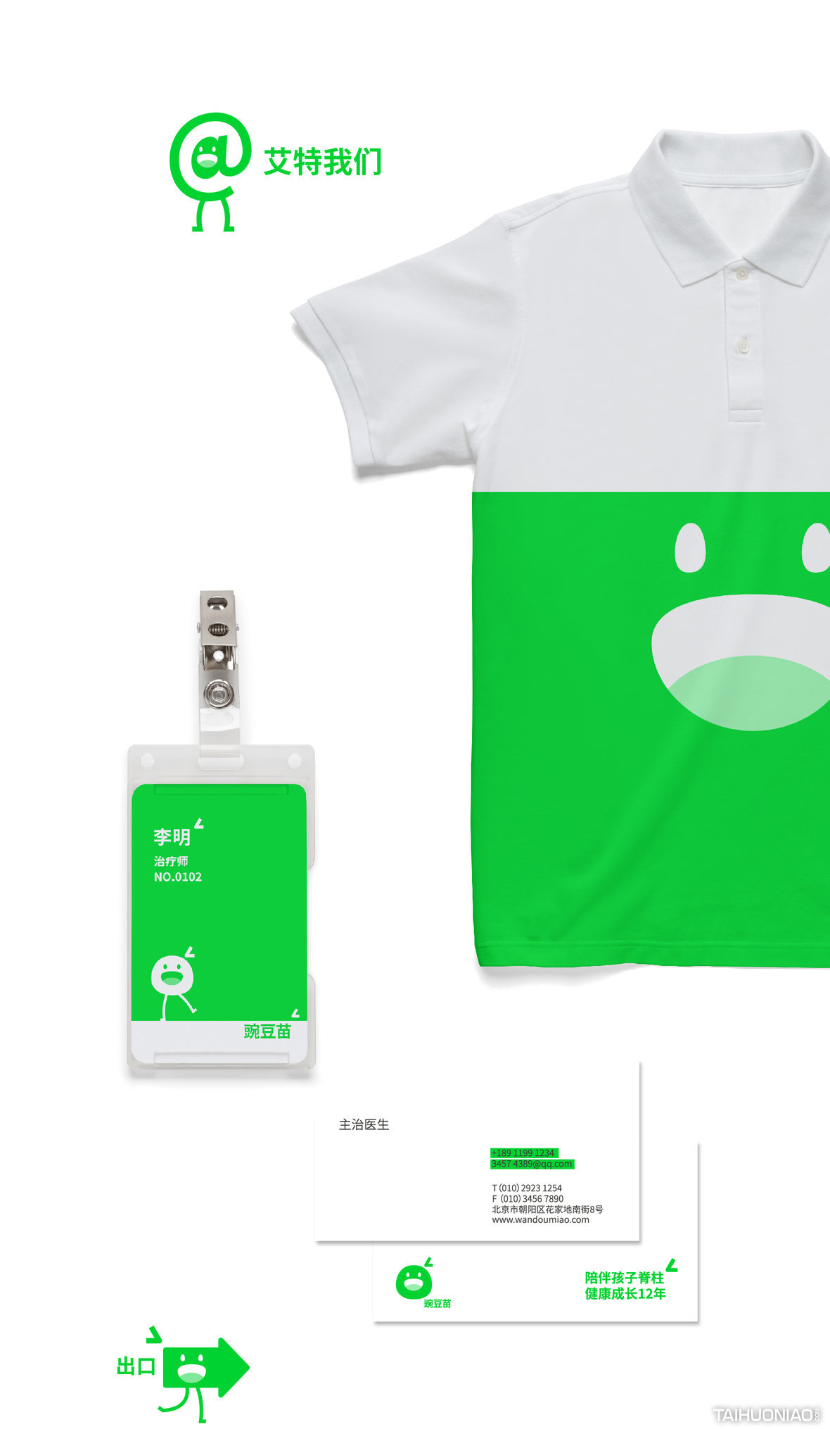 ART DIRECTOR : 谢大欢 DESIGNER : 李彦达;吴颖晗 YEAR : 2018_08 CLIENT : WANDOUMIAO 豌豆苗是一个致力于保护孩子避免“脊柱侧弯”的机构。通过对品牌的研究,我们提出“品牌与消费者的关系”是这个品牌思考的重心。“陪伴孩子脊柱健康 12 年”是我们思考后找到的突破口。我们通过一个成长中的豆子形象,满足了品牌面对不同阶段的孩子以及家长应该有的传播形象。让豆子与孩子共同在需要关注“脊柱成长”的关键 12 年里一同成长,构建了一个陪伴型的品牌形象。特别的是在颜色上,我们采用了专色荧光绿。通过在纸质物料上用专色印刷,一方面提升了品牌的视觉独特性,另一方面因为专色不能被打印的特性,提高了物料的信任感与权威性。