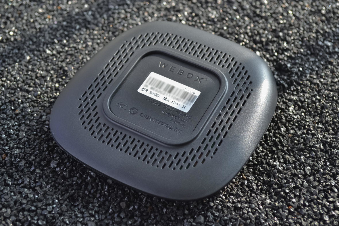 泰捷WEBOX 60C一直延续着经典的设计风格,黑色鹅卵石的外观。WEBOX logo像是烙印在石头上一般,虽然是塑料材质的外壳,但这个质感真心不错。