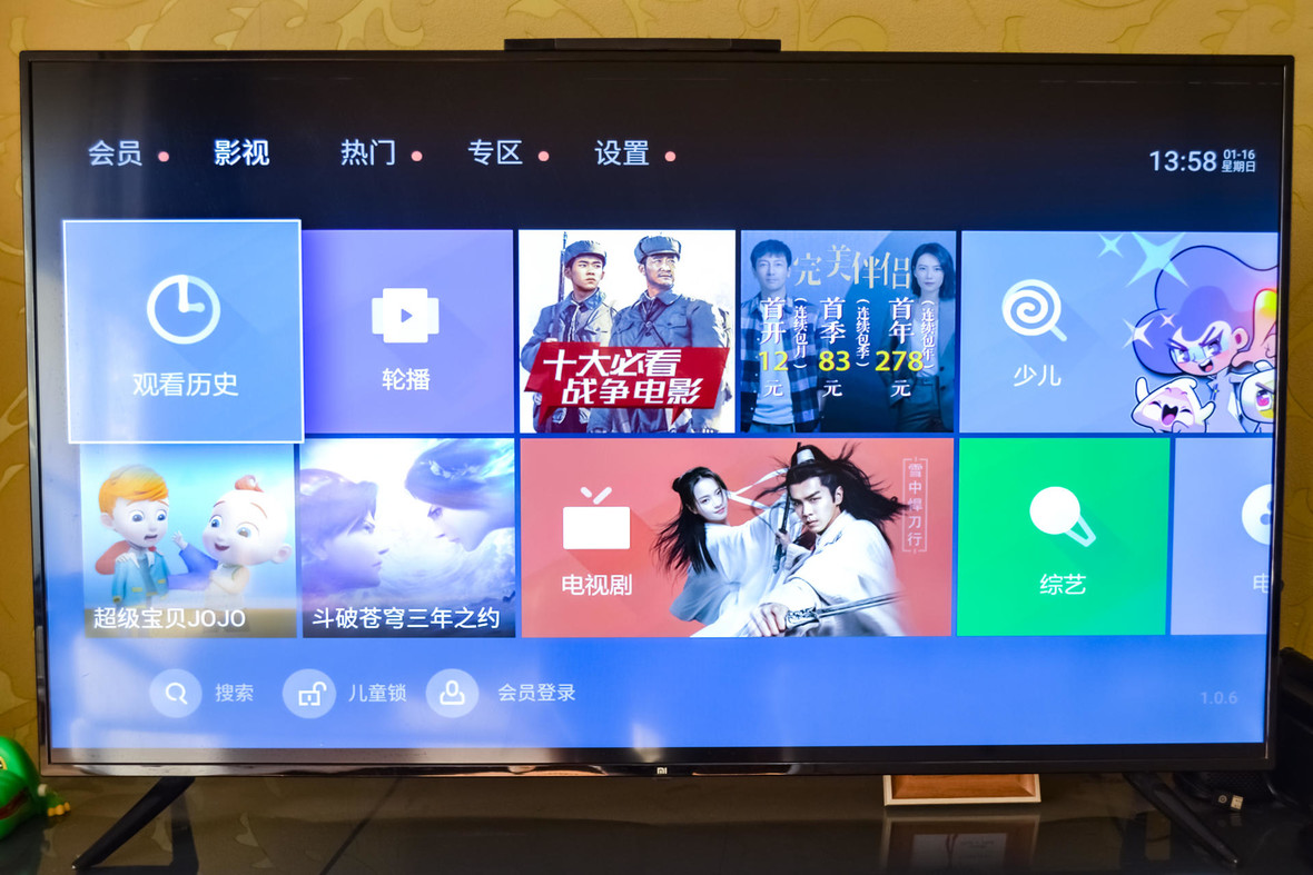 在下用的某米家电视,开机广告真的懒得调开路由器设置IP屏蔽了。真心的烦人又烦心,我这种白嫖党是不可能给电视机充值会员的。不过小孩子每次都还是会被电视机的广告吸引,他不感兴趣的还好,要是他看上什么东西,喋喋不休能说道很久想要的理由。第一次开机,泰捷盒子的开机动画。
