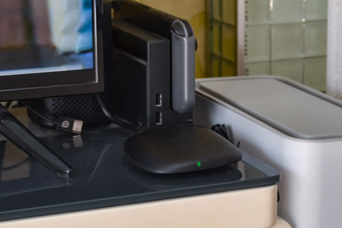 接口部分,从左到右分别是电源接口、USB扩展口、HDMI接口,还有一个AV视频接口,支持没有HDMI接口的老款电视机,投影仪等设备。不过AV视频线材是需要另行购买的