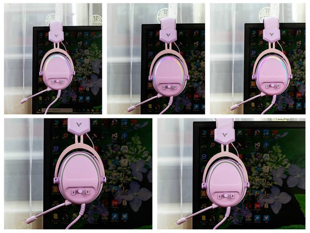 雷柏VH650的控制区域位于左耳耳罩的外侧,麦克风也位于左侧的耳罩上。在左耳的耳罩上,我们能看到RGB酷炫光按钮,麦克风静音按键,以及正中的音量调节按钮,向前旋转音量减小,向后旋转音量增大,在耳机上标有+和-的标识。你会发现电脑用的游戏耳机的控制区主要集中在左侧,因为右手更多的控制鼠标,而左手更多则是操作击打按键,或者对耳机进行调节。习惯了右手操作的用户,可能会稍微有些不适应,但问题不大。接入电脑以后,我能看到耳罩外侧的RGB炫彩灯带,RGB的酷炫灯效,并不是静止的,而是动态变化的,会有不同的炫彩灯效。如果仔细观察,会发现麦克风和酷炫灯效按键上的指示灯是亮起的,呈现绿色,表明组件正常工作;同时麦克风前端的红色LED灯也是亮起的,当把酷炫灯效关闭以后,就看到灯带呈现白色,没有了炫彩效果;如果将麦克风静音键开启,则麦克风静音,按键上的指示灯呈熄灭状态,同时麦克风前端的红色LED灯也会关闭。
