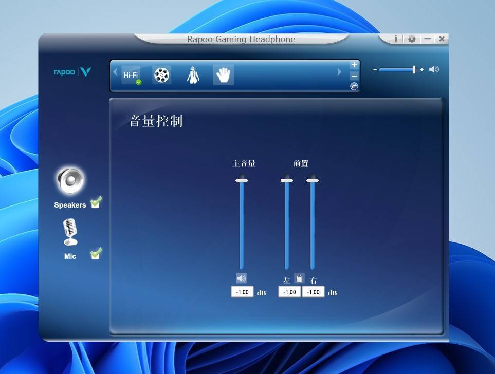 雷柏 VH650耳机的软件,有HiFi模式,电影模式,以及FPS游戏模式,和自定义模式,因为我是在win11系统下安装,所以有些功能可能没完全展示,但是在HiFi模式下的音质还是不错。