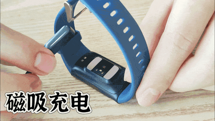 手环的充电方式为磁吸无线充电,轻轻一放即可让定位充电接口,180mah的聚合物电芯,可自然待机时间至20天左右。同时这款手环还具备30米防水等级,浅水游泳也可以佩戴,日常洗手洗脸、非热水淋浴也无需摘下。