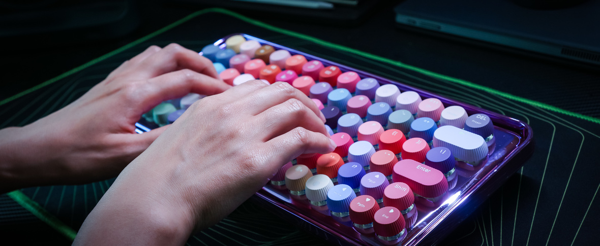 挑键盘的时候颜值是一方面,实用也是很重要的一面。雷柏ralemo Pre5搭载自主办公机械轴,我选了使用感受更轻快的青轴,敲击起来回弹清晰舒适,声音清脆好听。
